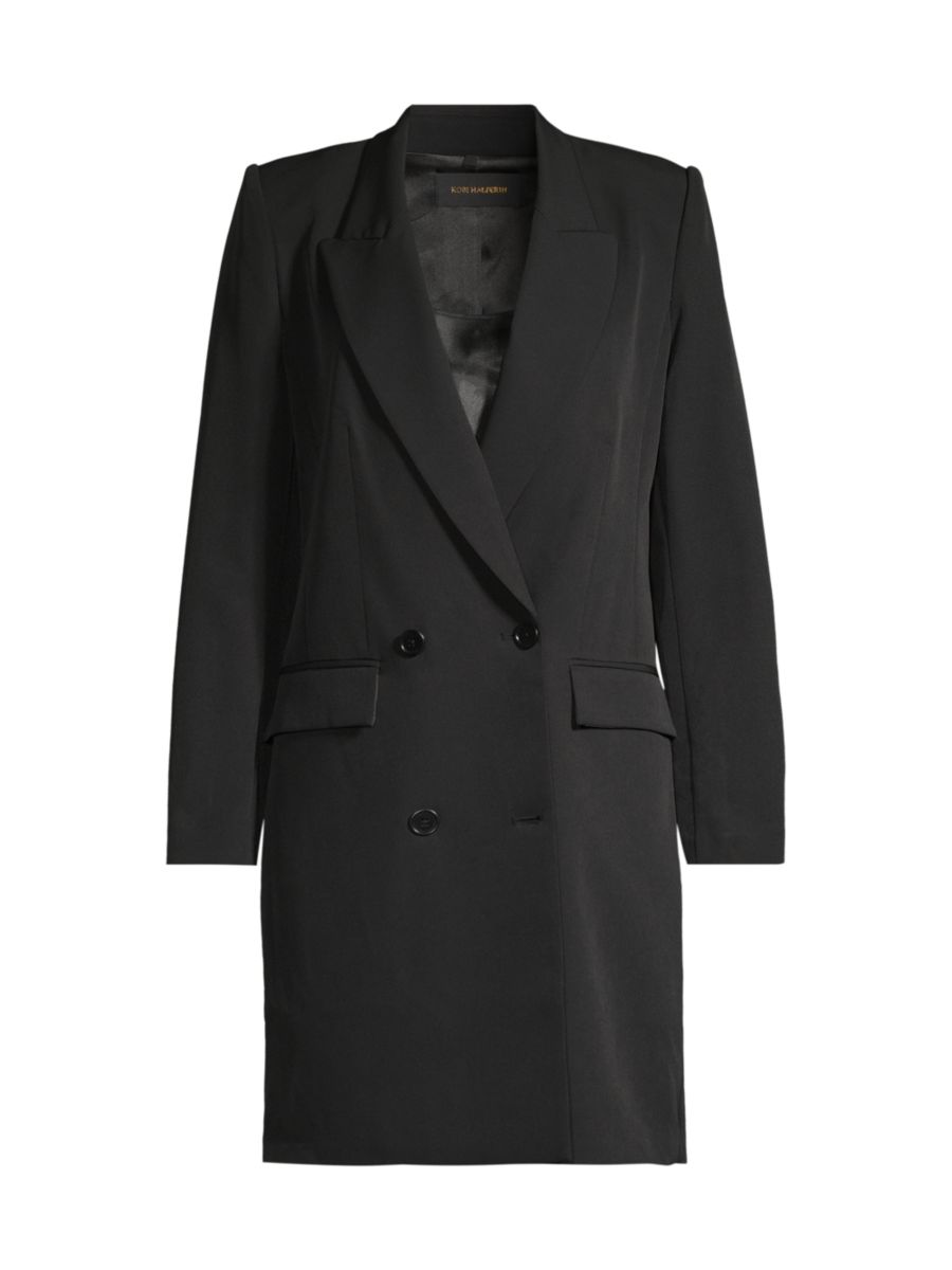 Платье-блейзер Ivy от Kobi Halperin сшито из твила. Этот приталенный фасон отличается двубортным силуэтом, острыми лацканами и карманами с клапанами на талии.