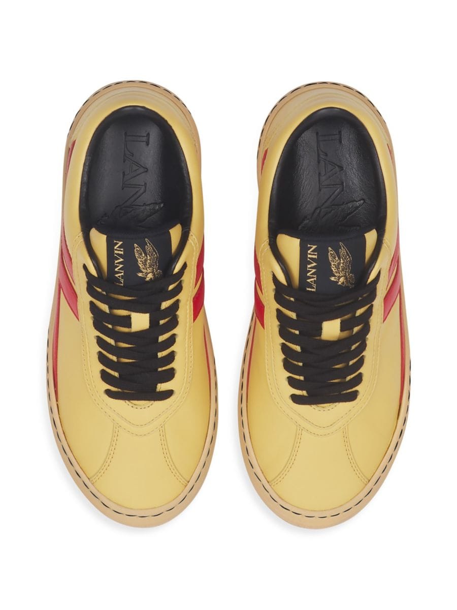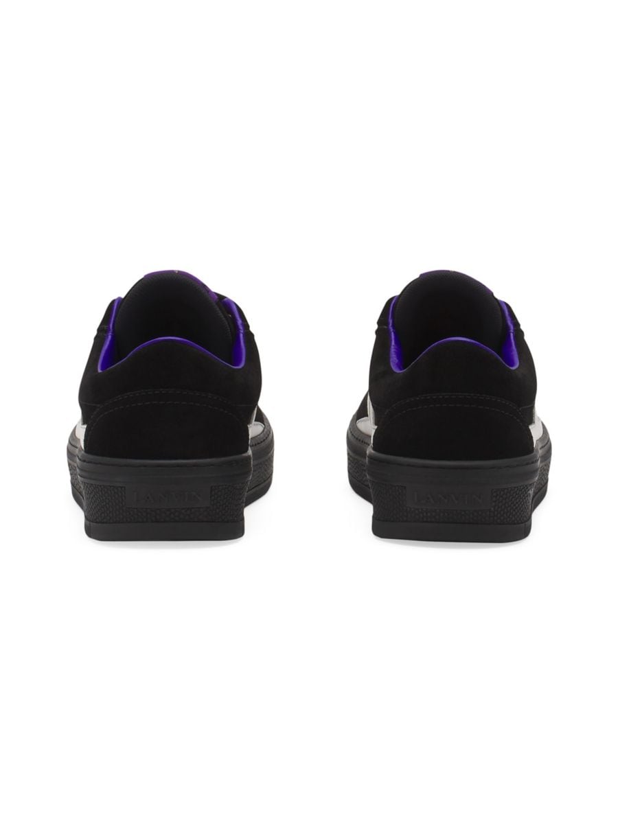 Эти кроссовки Cash, ставшие результатом сотрудничества Lanvin Lab и Future, переосмысливают классические низкие модели в смелом городском стиле. Модель выполнена из гладкой кожи с контрастной вставкой с логотипом JL, дополнена фиолетовой текстильной подкладкой и рельефной подошвой в тон, что делает её идеальной для улицы.