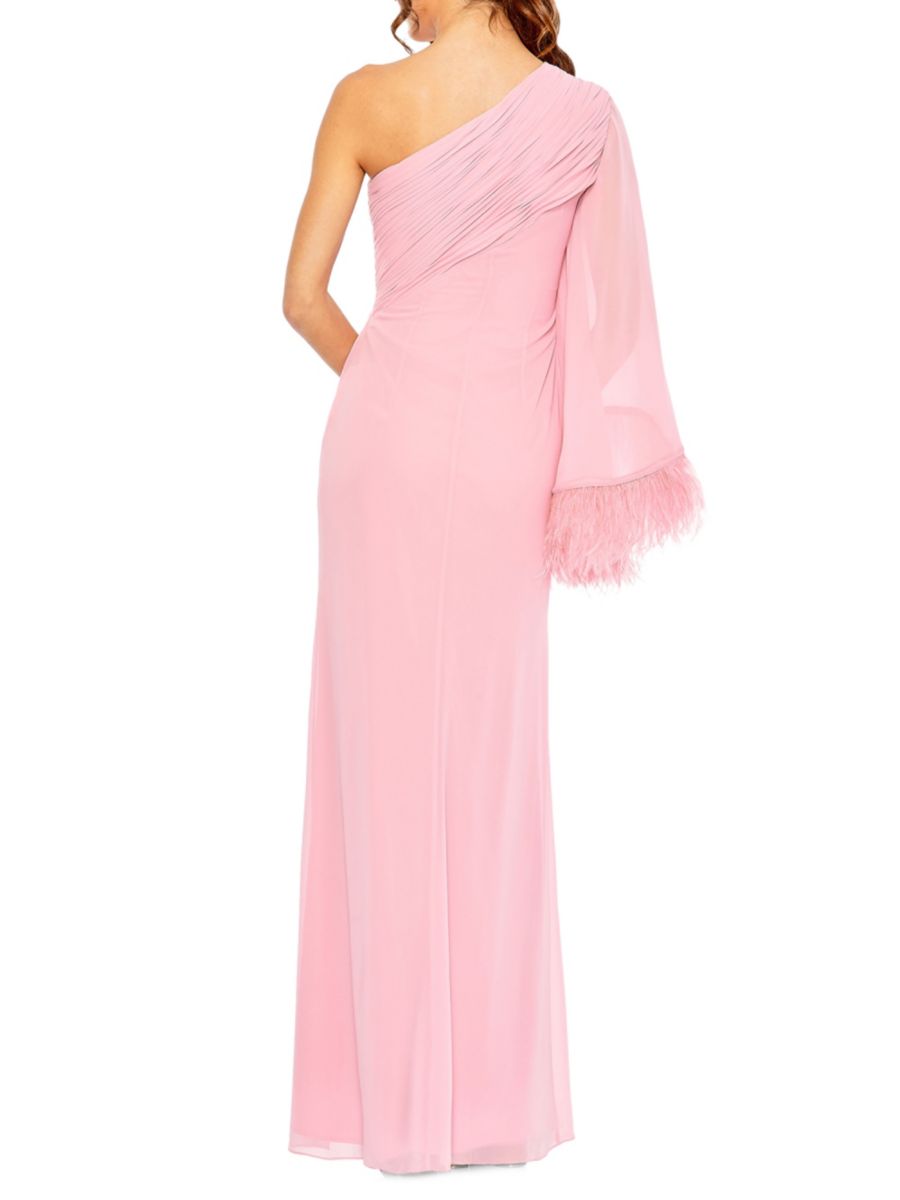 Платье на одно плечо с перьями и сборками Mac Duggal, белый