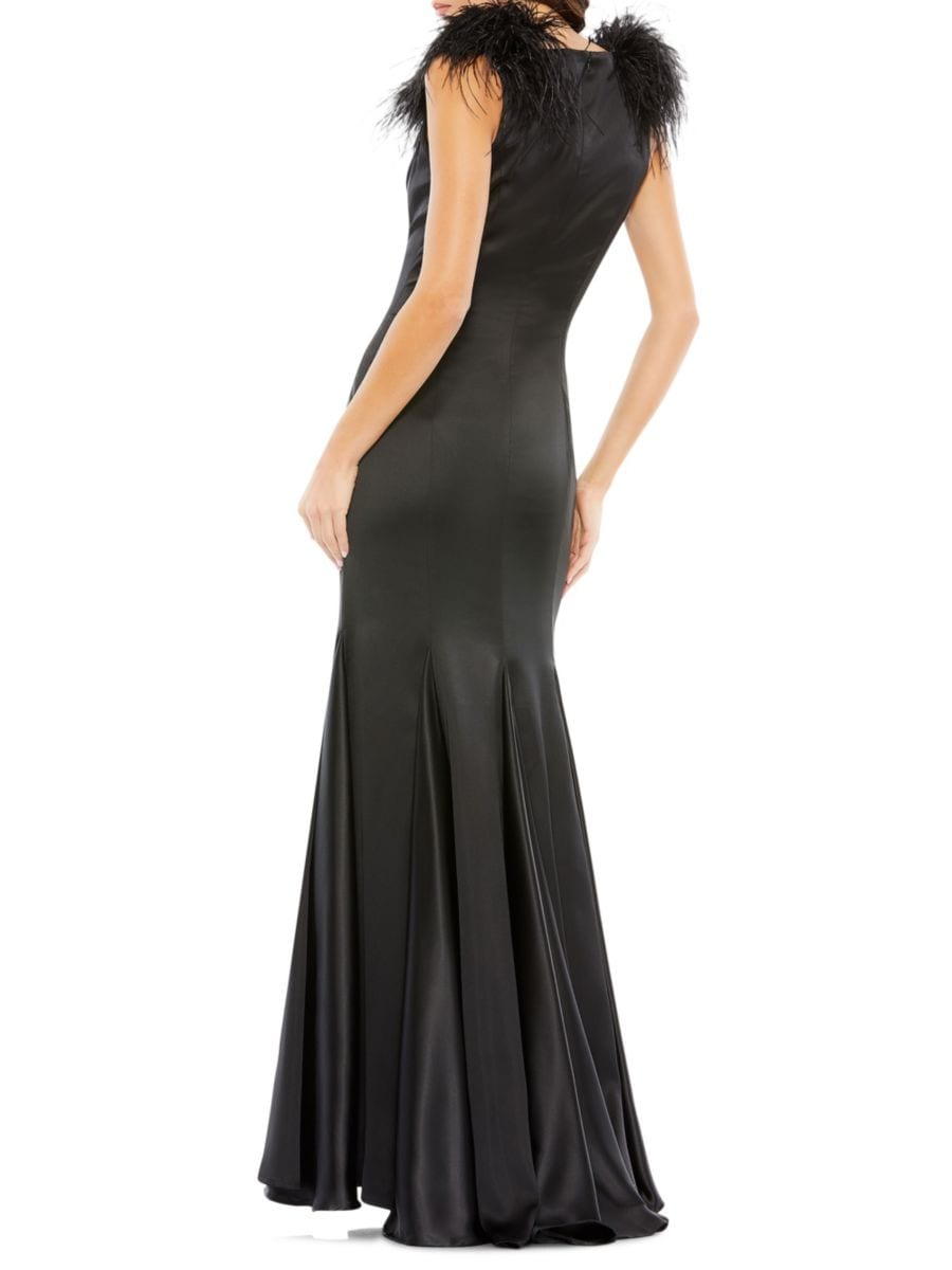 Платье силуэта русалка с отделкой из страусиных перьев Mac Duggal, черный