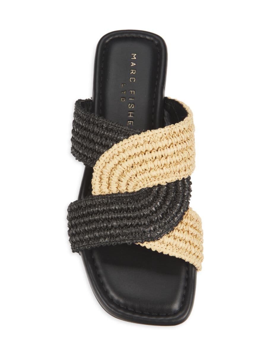 Эти текстурированные сандалии Marc Fisher LTD Navie изготовлены из текстильного верха с синтетической подкладкой и мягкой стелькой. Открытый носок легко надевается, а подошва выполнена из синтетического материала.