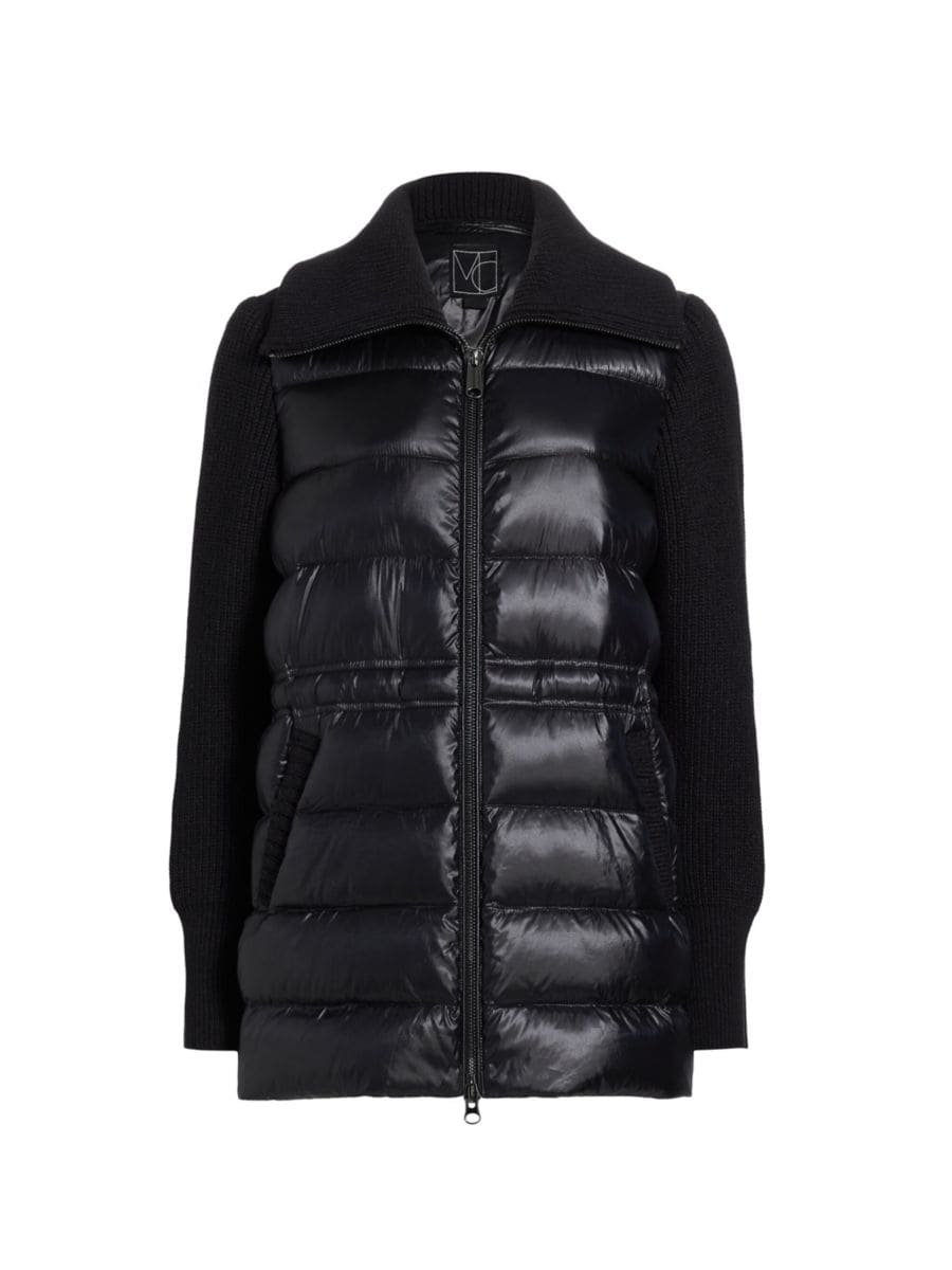ЭКСКЛЮЗИВНО В SAKS OFF FIFTH. Пуховик Mac от Mercer Collective отличается дутым лифом и контрастными рукавами из ребристой ткани, создавая образ в стиле микс-медиа. Эта универсальная модель отличается воротником-стойкой, боковыми прорезными карманами и застежкой-молнией спереди.