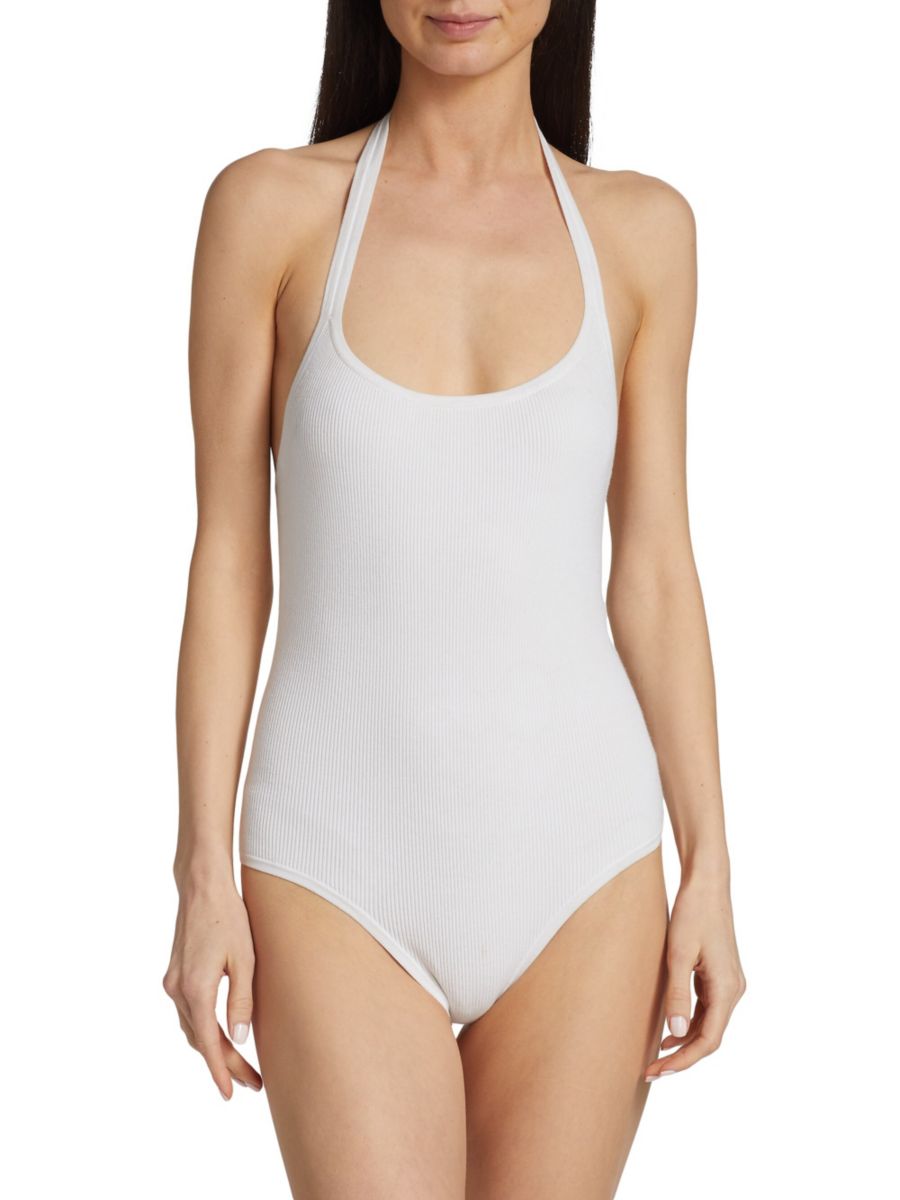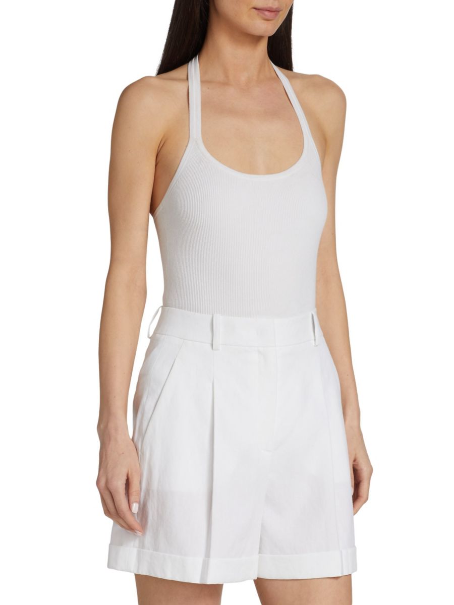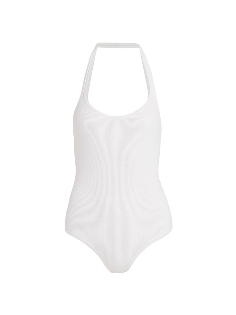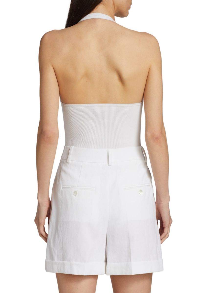 Боди из эластичного джерси с бретелькой через шею Michael Kors Collection, цвет Optic White