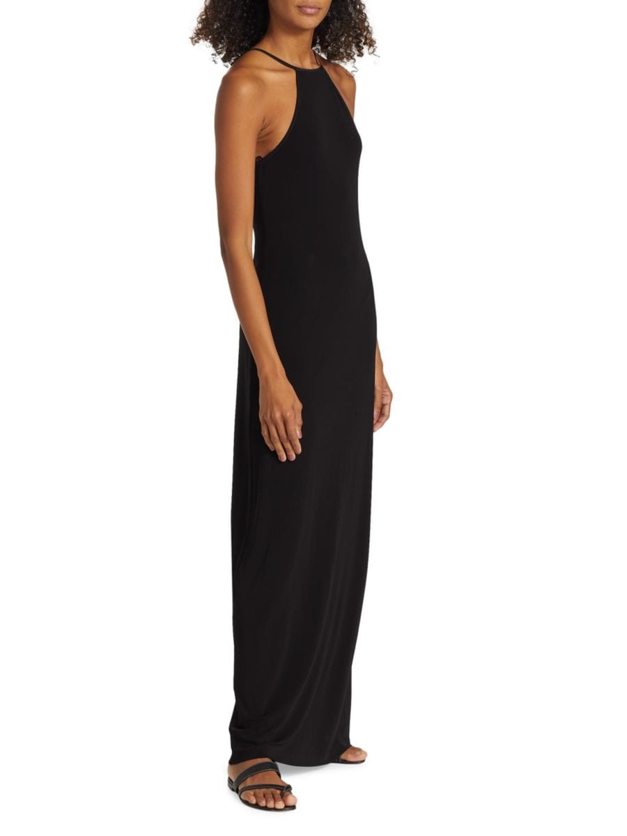 Платье Lucette от Nili Lotan длиной до пола с изящным халтером и элегантным шлейфом.