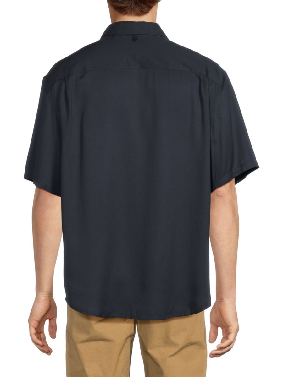 Эта рубашка с короткими рукавами выполнена из мягкого модала с струящейся драпировкой. Отложной воротник и два кармана с клапанами на груди создают практичный образ.