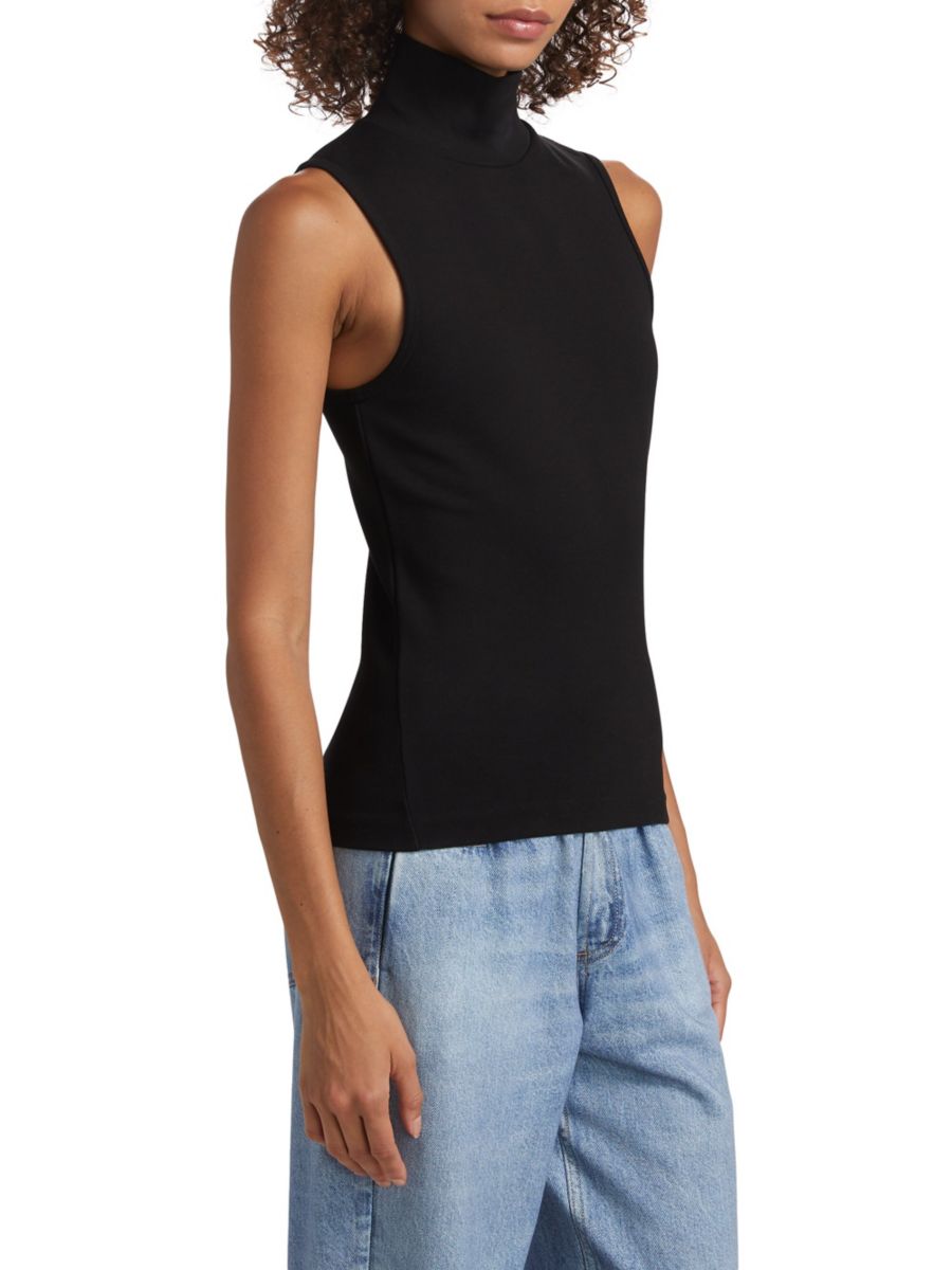 Приталенная майка Irina от rag & bone, выполненная из трикотажной смеси понте, имеет высокий воротник.