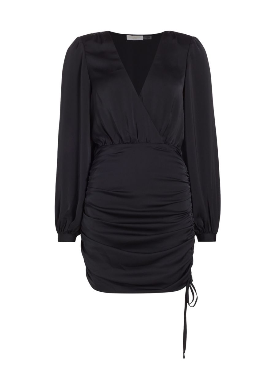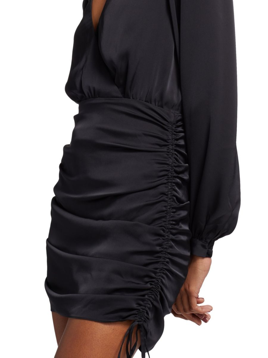 Мини-платье Foxy от Ramy Brook с V-образным вырезом и длинными рукавами с манжетами на пуговицах. Приталенная юбка со сборками и регулируемым завязкой завершает образ.