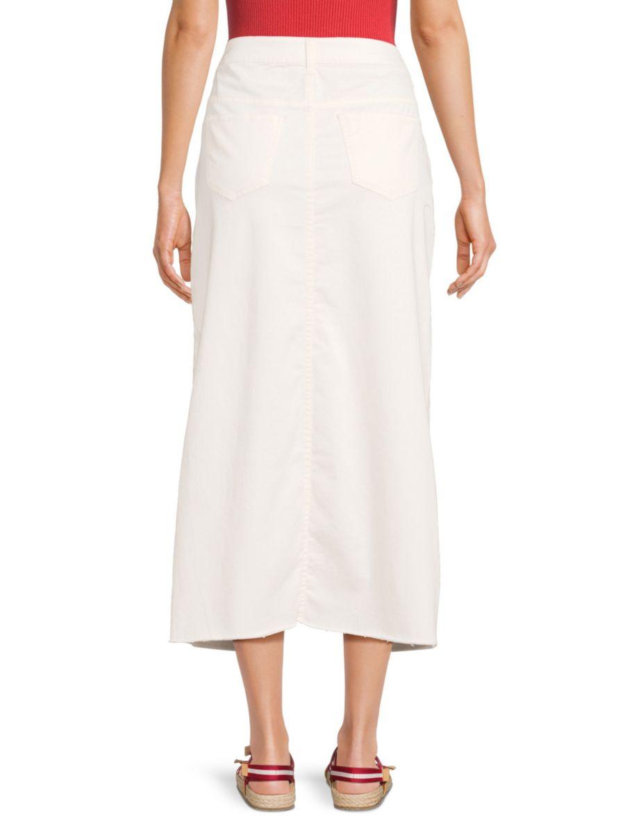 Необработанный край и разрез спереди придают непринужденный вид этой юбке миди из смесового хлопкового денима от RD Style. Юбка имеет силуэт с пятью карманами и слегка растягивается для большего комфорта.