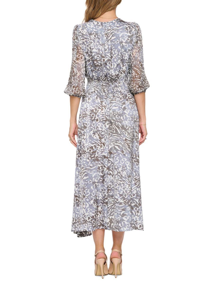 Это платье Renee C. с абстрактным принтом и силуэтом блузон предлагает мягкий, струящийся силуэт с современным художественным оттенком. Элегантный дизайн делает его идеальным как для дневного, так и для вечернего выхода.