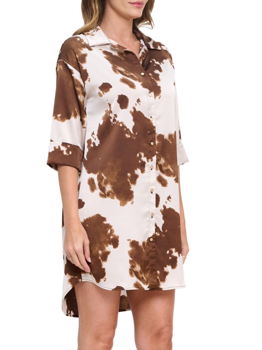 Это мини-платье-рубашка от Renee C. с абстрактным принтом и спущенными плечами выполнено из эластичной ткани с асимметричным подолом для придания формы и движения.