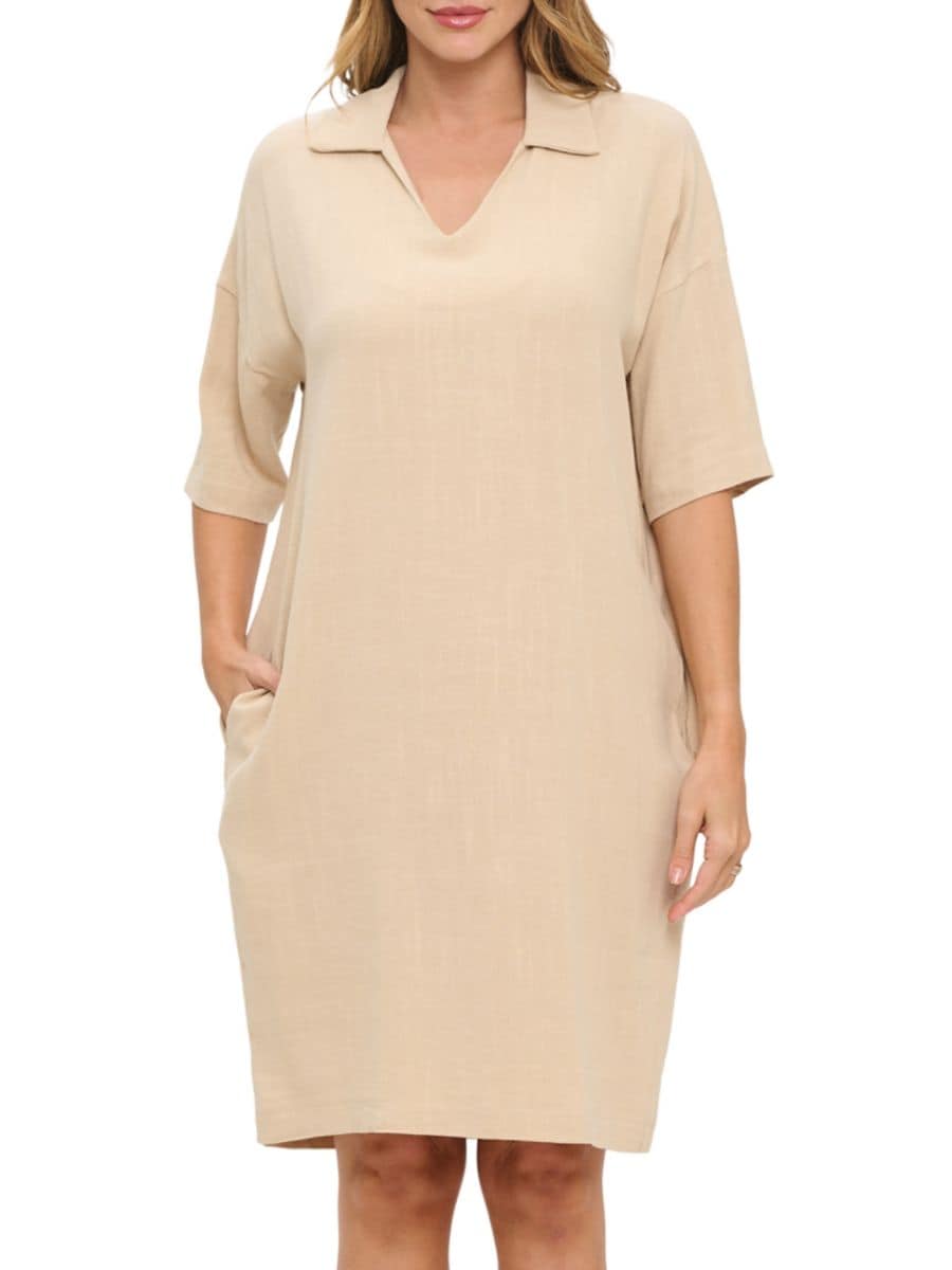 Это платье длиной до колена отличается изысканным воротником Johnny, изящно спущенными плечами и незаметными боковыми карманами, что придает ему сдержанную элегантность.
