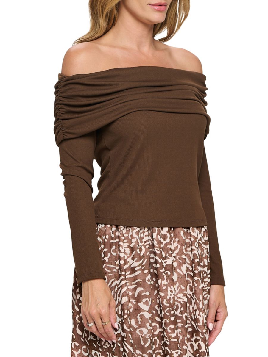 Ребристый топ с открытыми плечами Renee C., цвет Chocolate