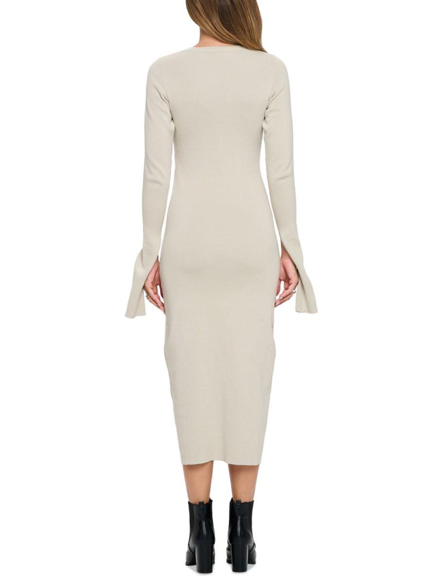 Платье миди Renee C. с ребристой текстурой облегает тело, создавая привлекательный приталенный силуэт. Разрез горловины добавляет современный штрих, а разрезы на манжетах — изящную, но стильную деталь на рукавах.
