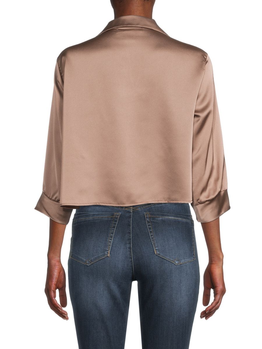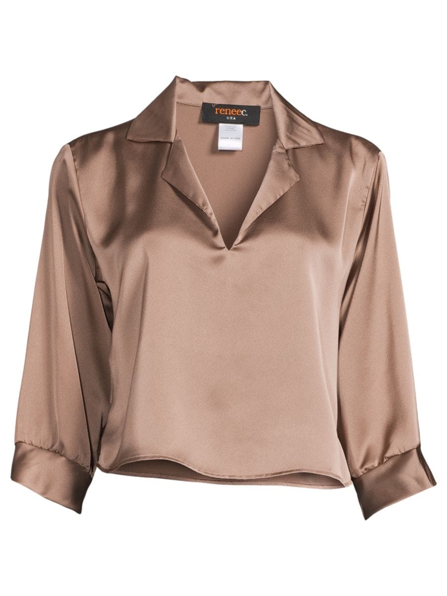 Этот топ Renee C — современная интерпретация классического костюма. Несмотря на то, что рабочая одежда находится под влиянием стиля casual-athleisure, женщины по-прежнему стремятся выглядеть женственно и стильно. Этот топ выполнен из струящегося атласа с отложным воротником и манжетами на пуговицах. Сочетайте его с юбкой из той же коллекции.