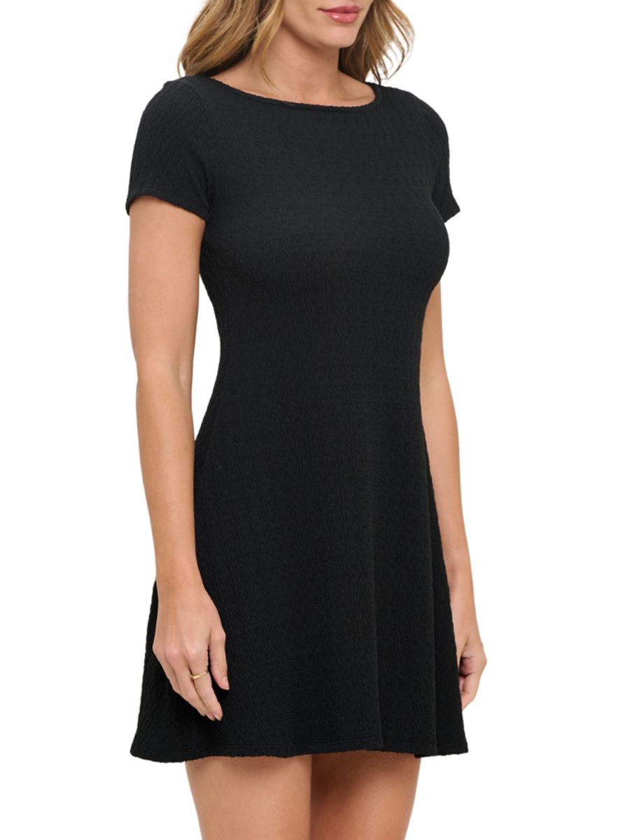Мини-платье Renee C. отличается текстурированным дизайном, короткими рукавами и кроем, создающим А-образный силуэт.