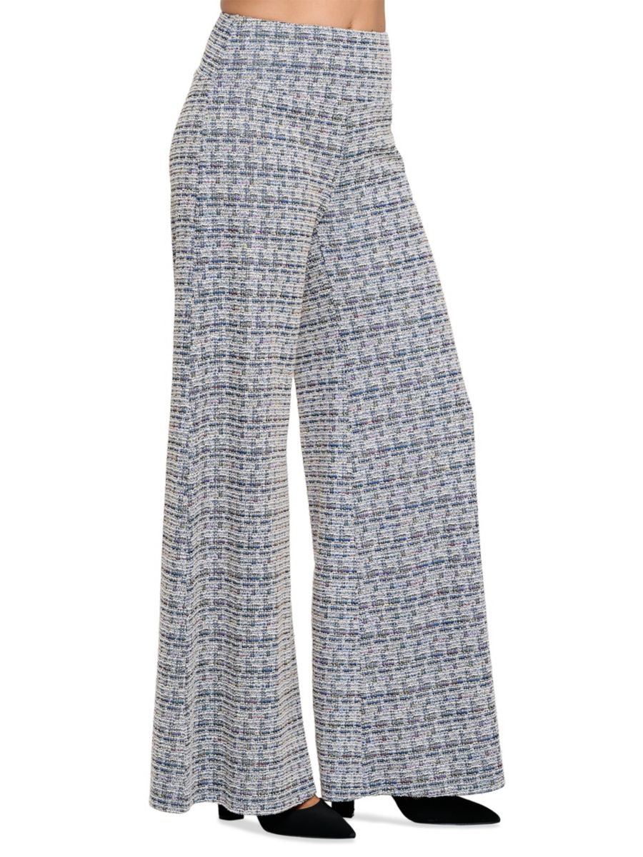 Твидовые брюки Renee C. с эластичным поясом обеспечивают удобную посадку без застежек. Широкий силуэт создает непринужденный и элегантный образ.