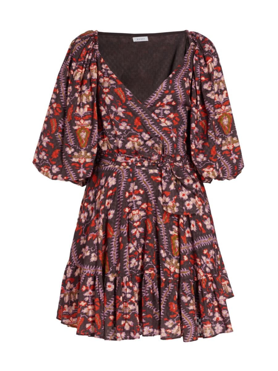 Платье Darya с объемными рукавами-буфами и V-образным вырезом дополнено струящимся многоуровневым подолом.