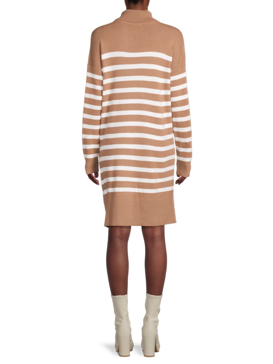 ЭКСКЛЮЗИВНО В SAKS OFF FIFTH. Это шикарное мини-платье-свитер с классическим полосатым узором, водолазкой и спущенными плечами обеспечивает комфортную посадку.