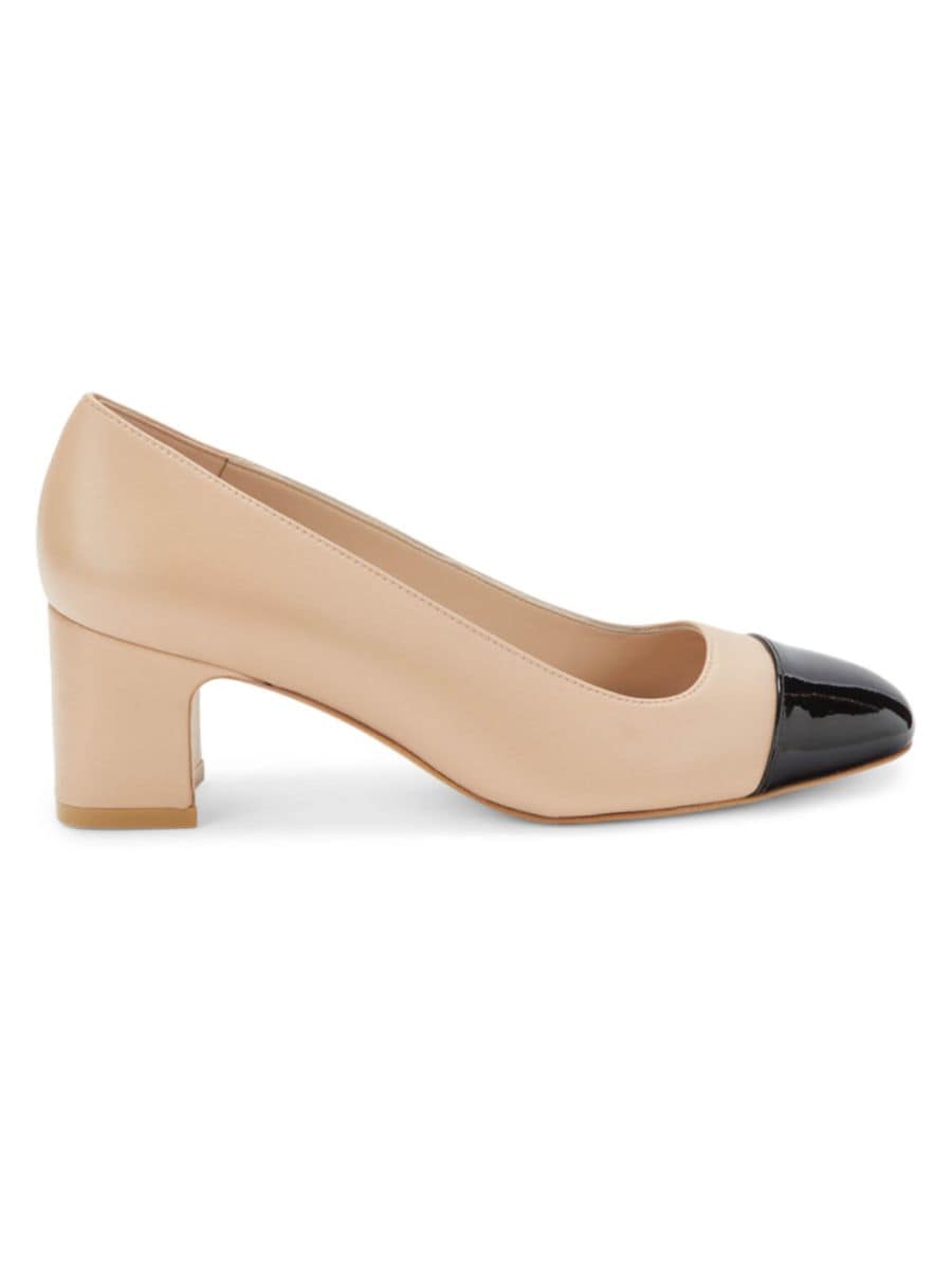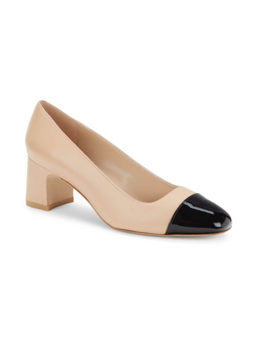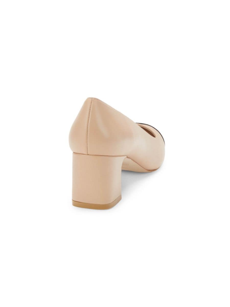Эти классические и современные туфли-лодочки изготовлены из кожи и оснащены блочным каблуком с закругленным носком.