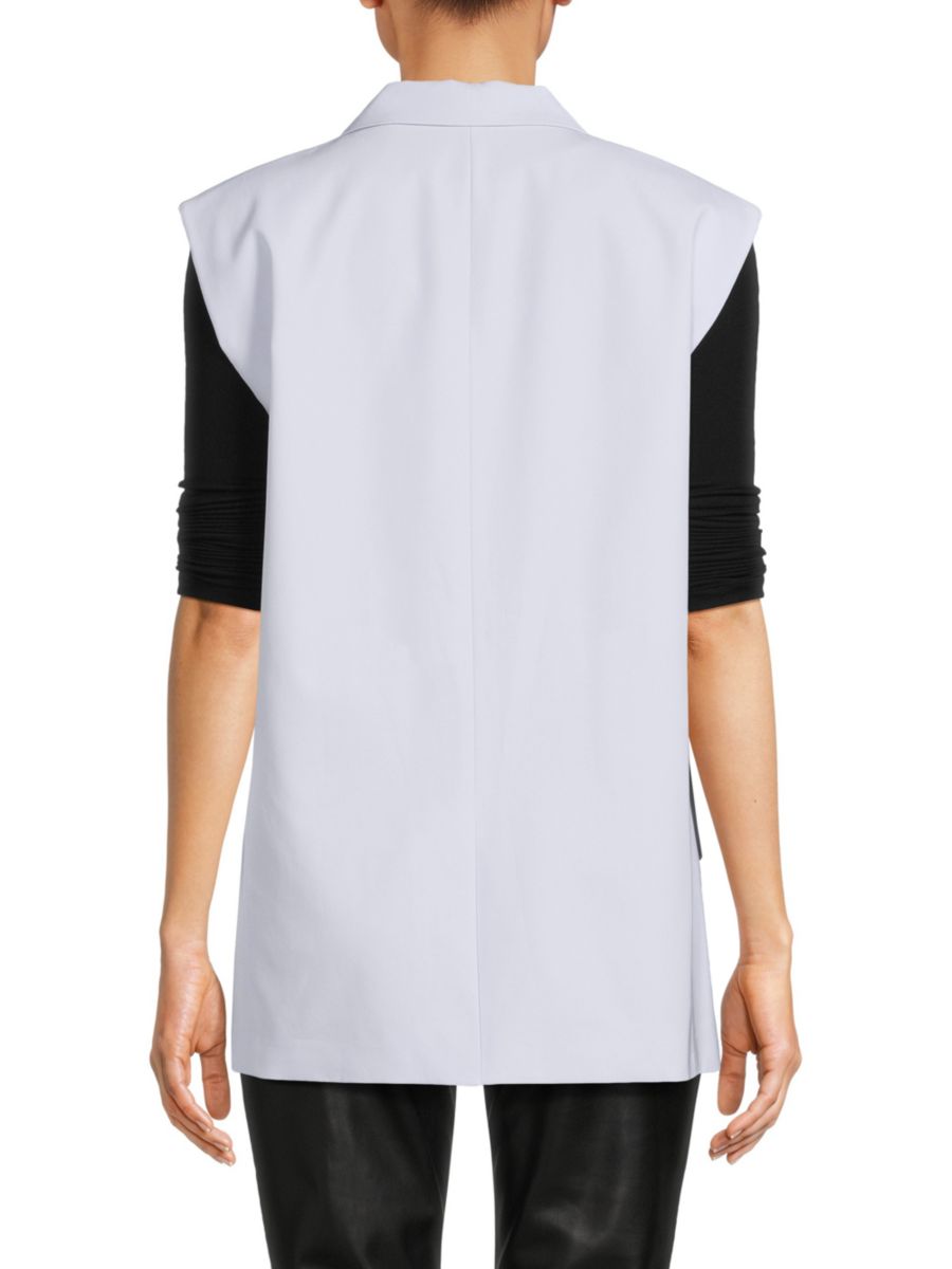 Блейзер без рукавов Theory, сшитый из хлопкового твила, имеет свободный, квадратный крой. Классический крой с лацканами и боковыми карманами с клапанами.