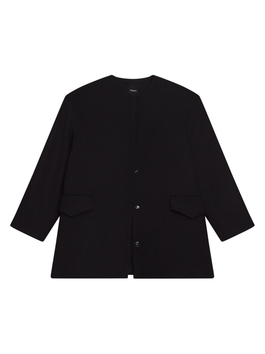 Шерстяное пальто с кейп-бэком Theory, черный 44 153₽