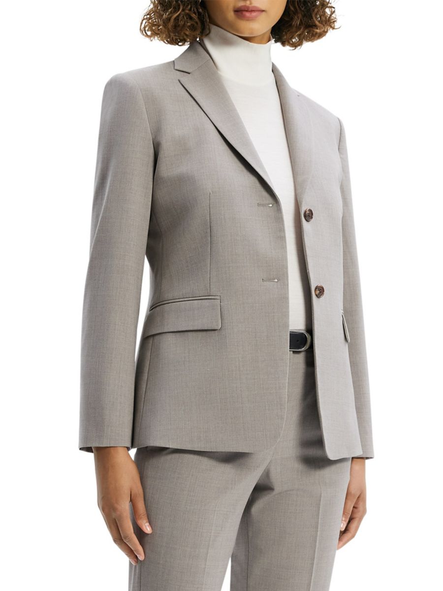 Приталенный шерстяной блейзер Theory, цвет Cinder Melange