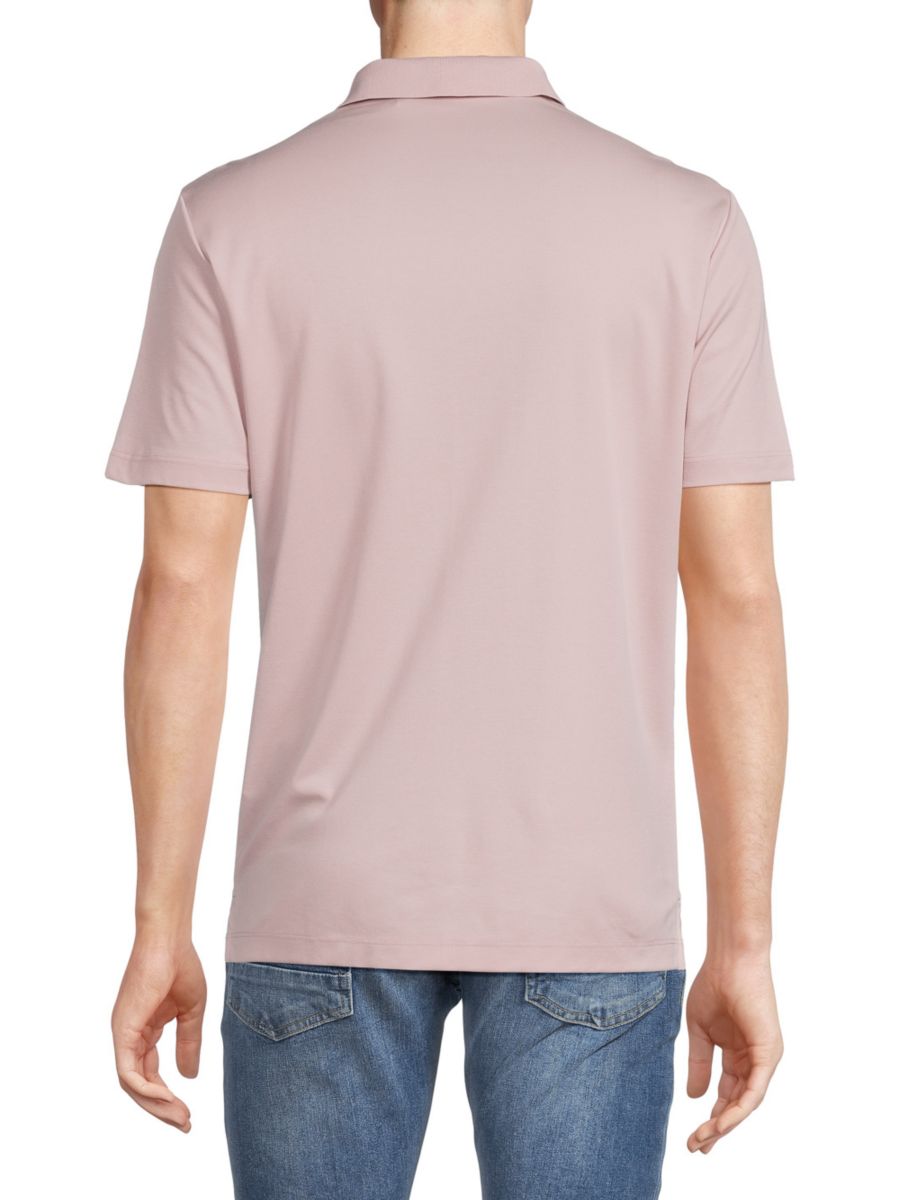Эта простая, сдержанная рубашка-поло сшита из мягкой хлопковой смеси и имеет короткие рукава.