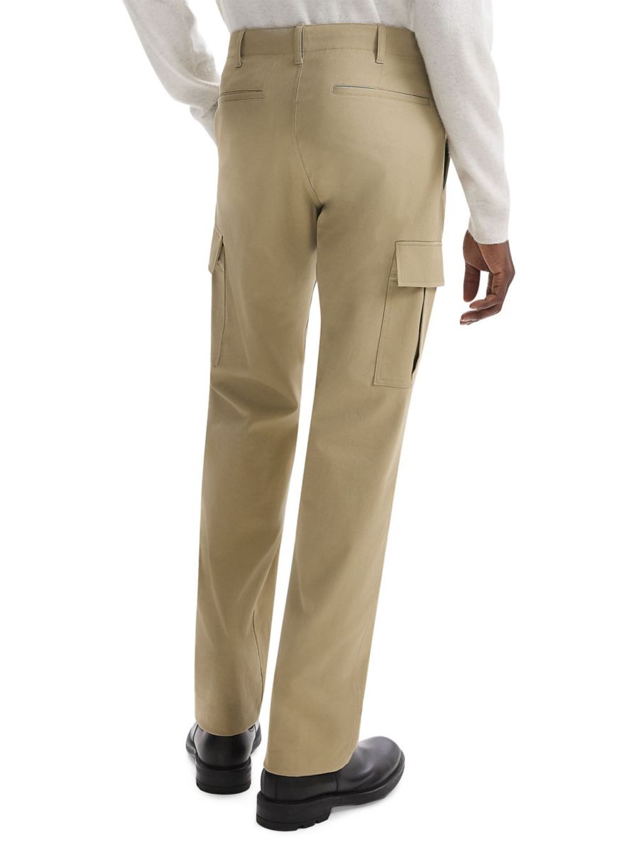 Эти брюки Theory прямого кроя оснащены шлевками для ремня и карманами с клапанами. Модель без застежки выполнена из плотного хлопка с приятной эластичностью.