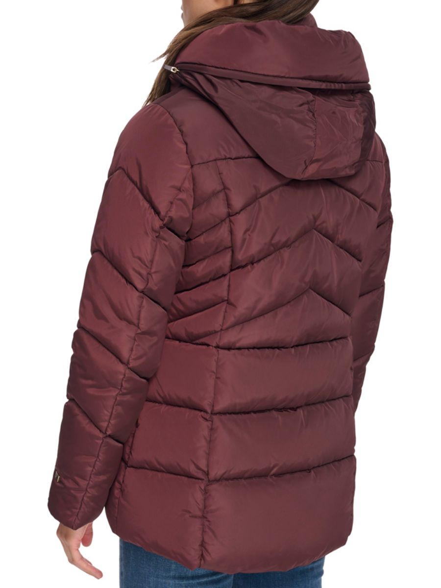 Пуховик Tommy Hilfiger изготовлен из гладкой тканой основы с канавочной простежкой и утеплителем, дополнен прикрепленным капюшоном и передними накладными карманами.