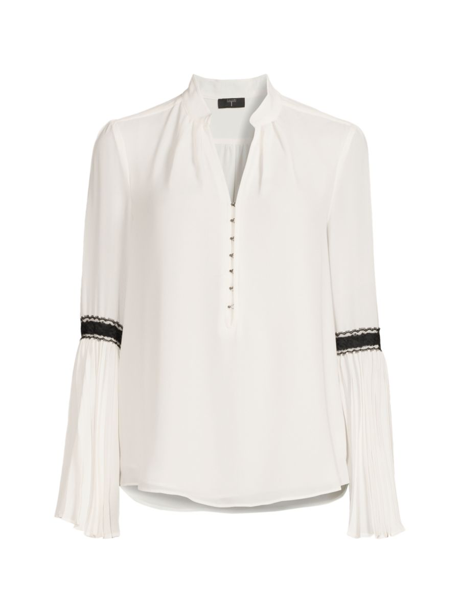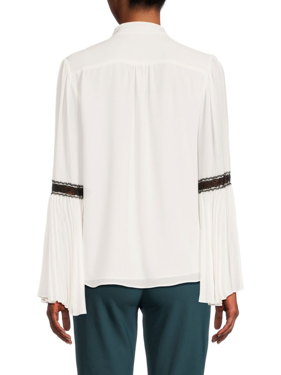 Эта блузка с расклешенными рукавами отлично подойдет смелой, уверенной в себе женщине, которая любит привлекать к себе внимание, куда бы она ни пошла.