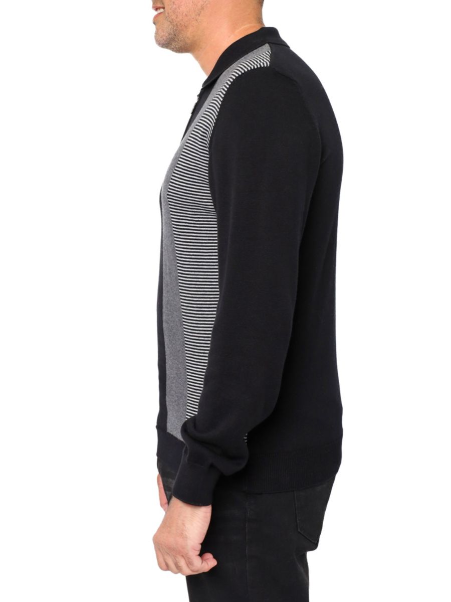 Это полосатое поло на молнии от Vellapais выполнено из мягкого хлопка. Оно имеет классический воротник-поло, ребристые манжеты и подол. Благодаря частичной молнии спереди и длинным рукавам, этот свитер с непринужденной элегантностью легко сочетается с другими вещами.