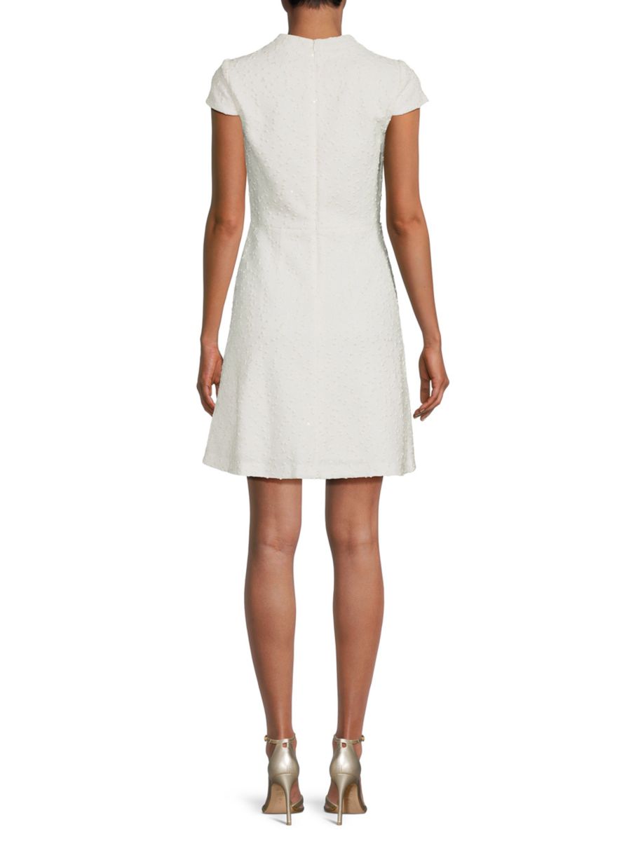 Это платье-букле от Vince Camuto с круглым вырезом и рукавами-крылышками создаёт классический силуэт. Платье выполнено из смеси полиэстера и спандекса, подкладка из полиэстера обеспечивает структурированную текстуру и застёжку-молнию сзади для элегантного и привлекательного образа.