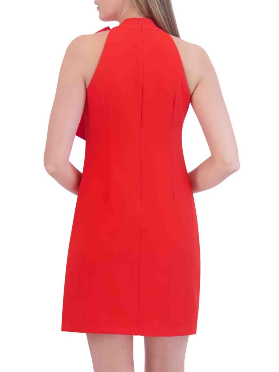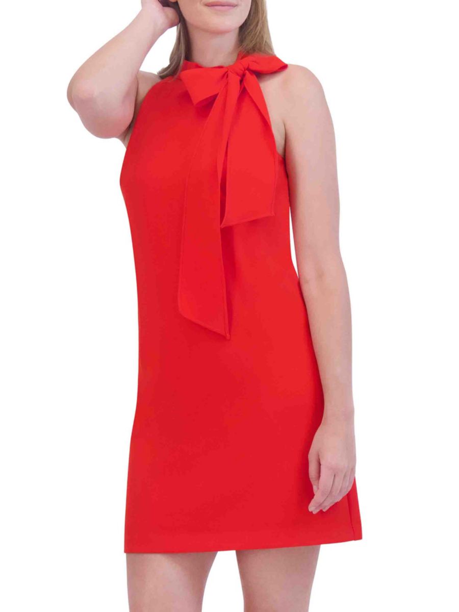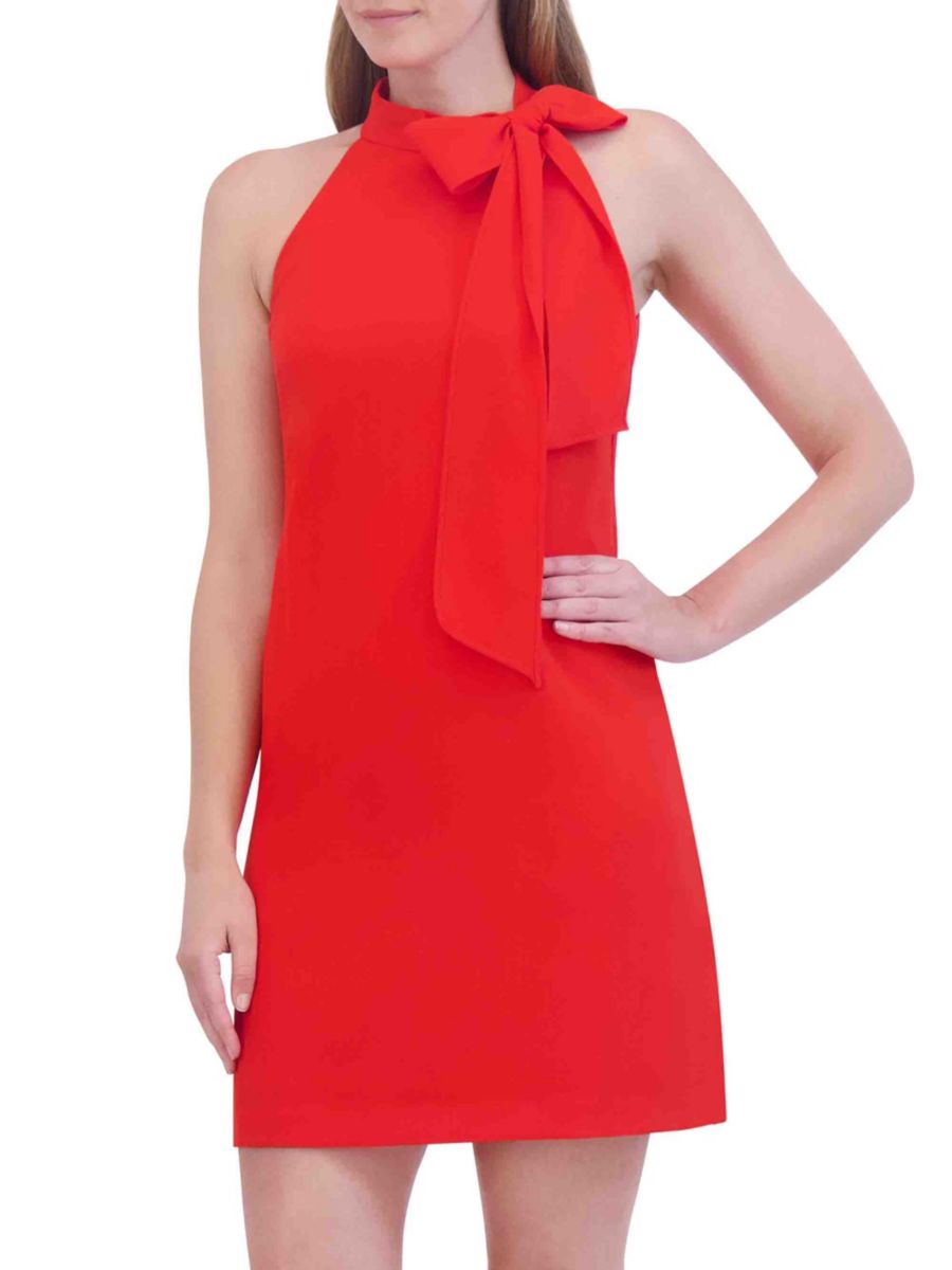 Это мини-платье от Vince Camuto с шикарным завязывающимся вырезом, создающим эффект банта, и безрукавкой, создающей игривый, но элегантный образ. Прямой силуэт обеспечивает свободную посадку, а застежка-молния сзади обеспечивает удобство.