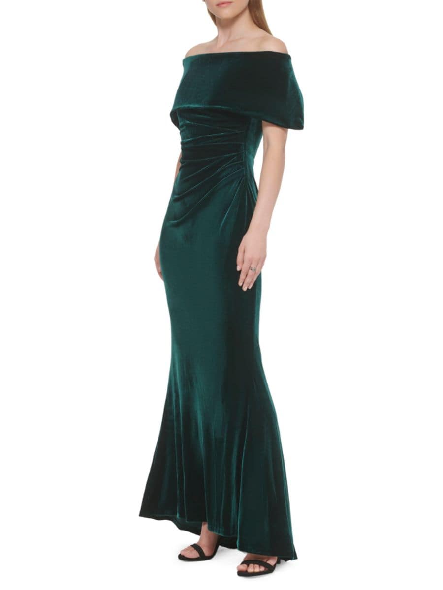 Бархатное платье с открытыми плечами Vince Camuto, цвет Hunter