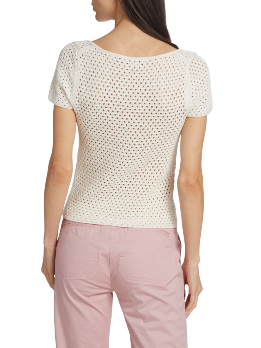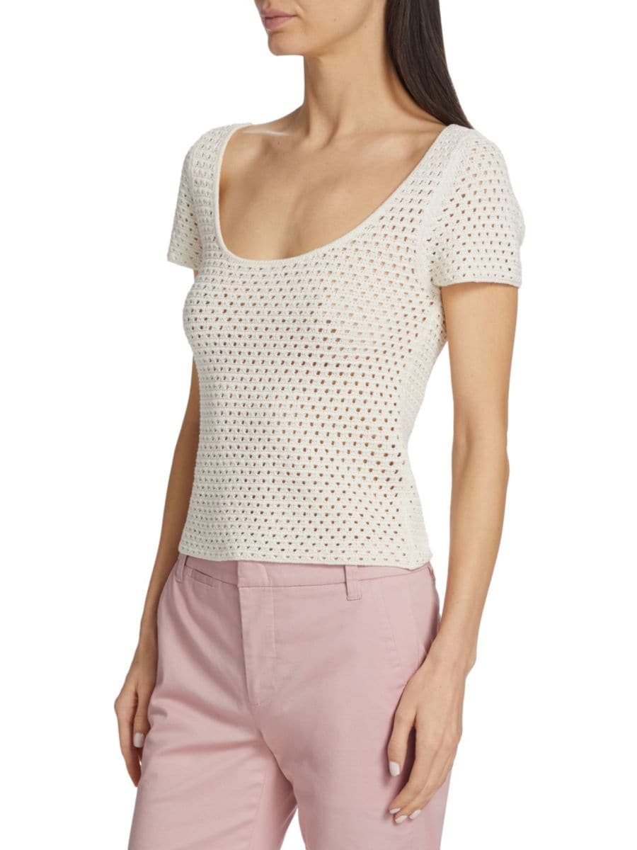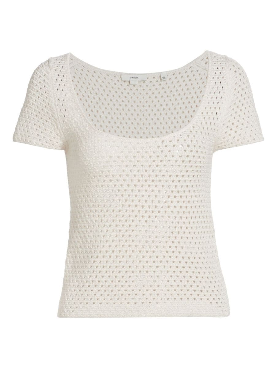 Классический топ Винса с короткими рукавами, выполненный из хлопковой сетки, дополнен широким круглым вырезом.
