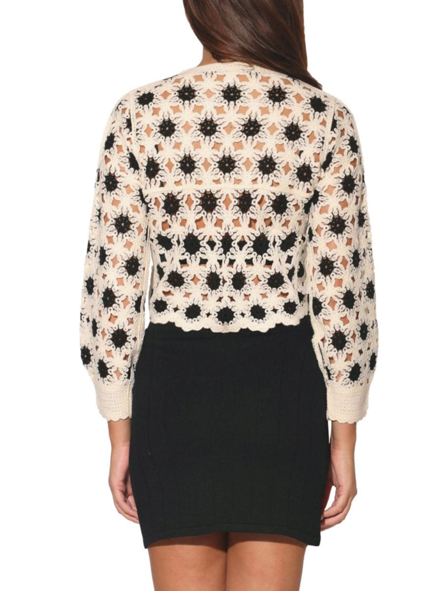 Из коллекции Dot Crochet. Этот укороченный кардиган от Walter Baker выполнен с фестончатым вырезом, манжетами и подолом. Цветочный узор, связанный крючком, завершает образ.
