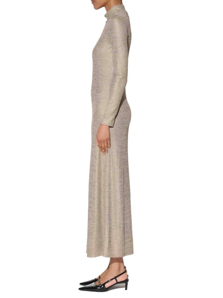 Платье макси Ella от Walter Baker отличается привлекательной металлической отделкой и дизайном водолазка, добавляя сдержанный шик современному стилю.
