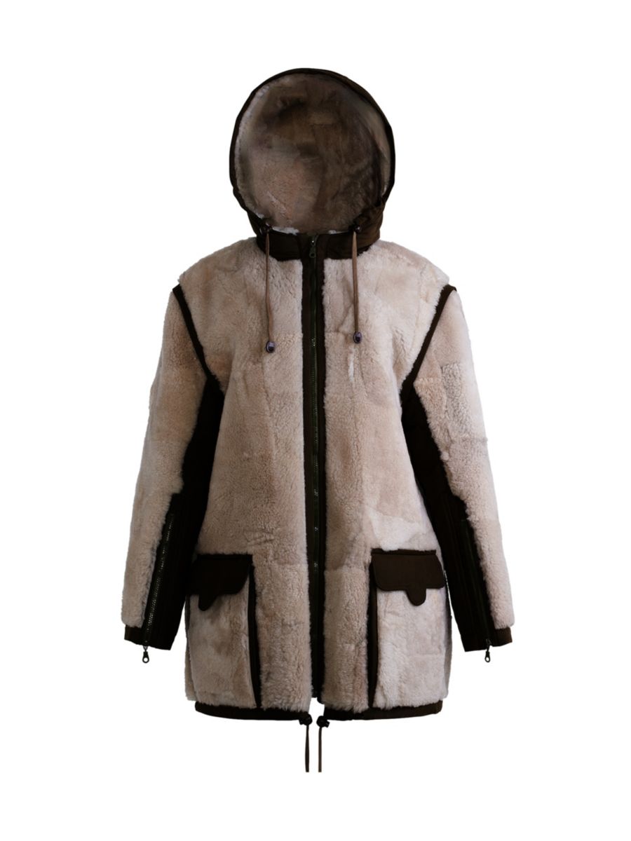 Куртка из овчины на молнии с капюшоном Made For Generations WOLFIE FURS, песочный