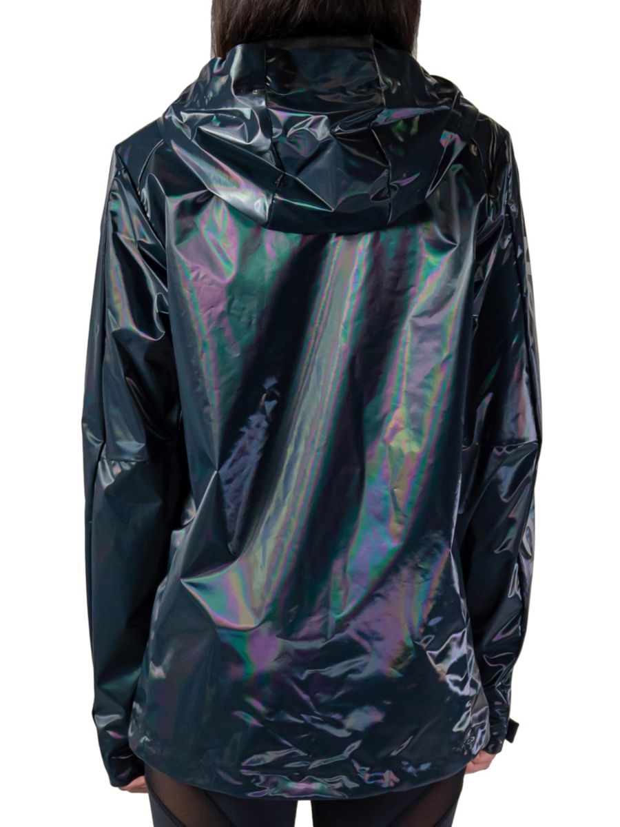 Переливающаяся куртка-дождевик с капюшоном, привлекающая внимание и защищающая от непогоды.