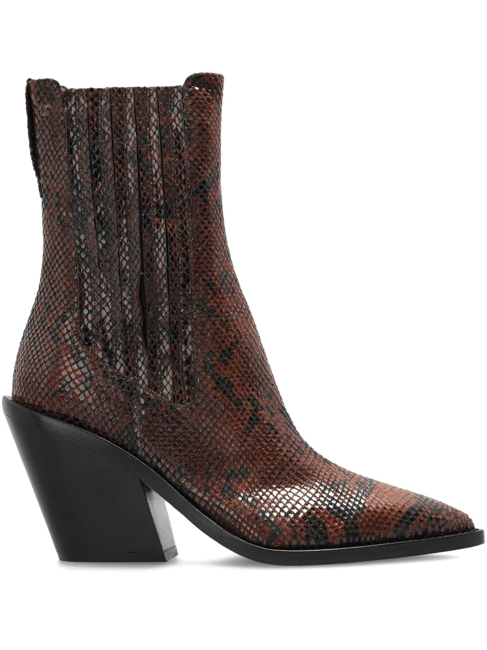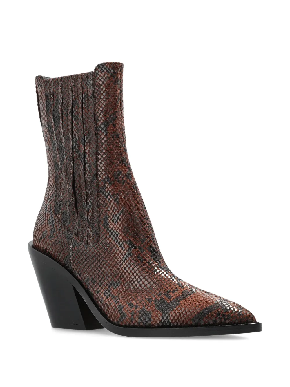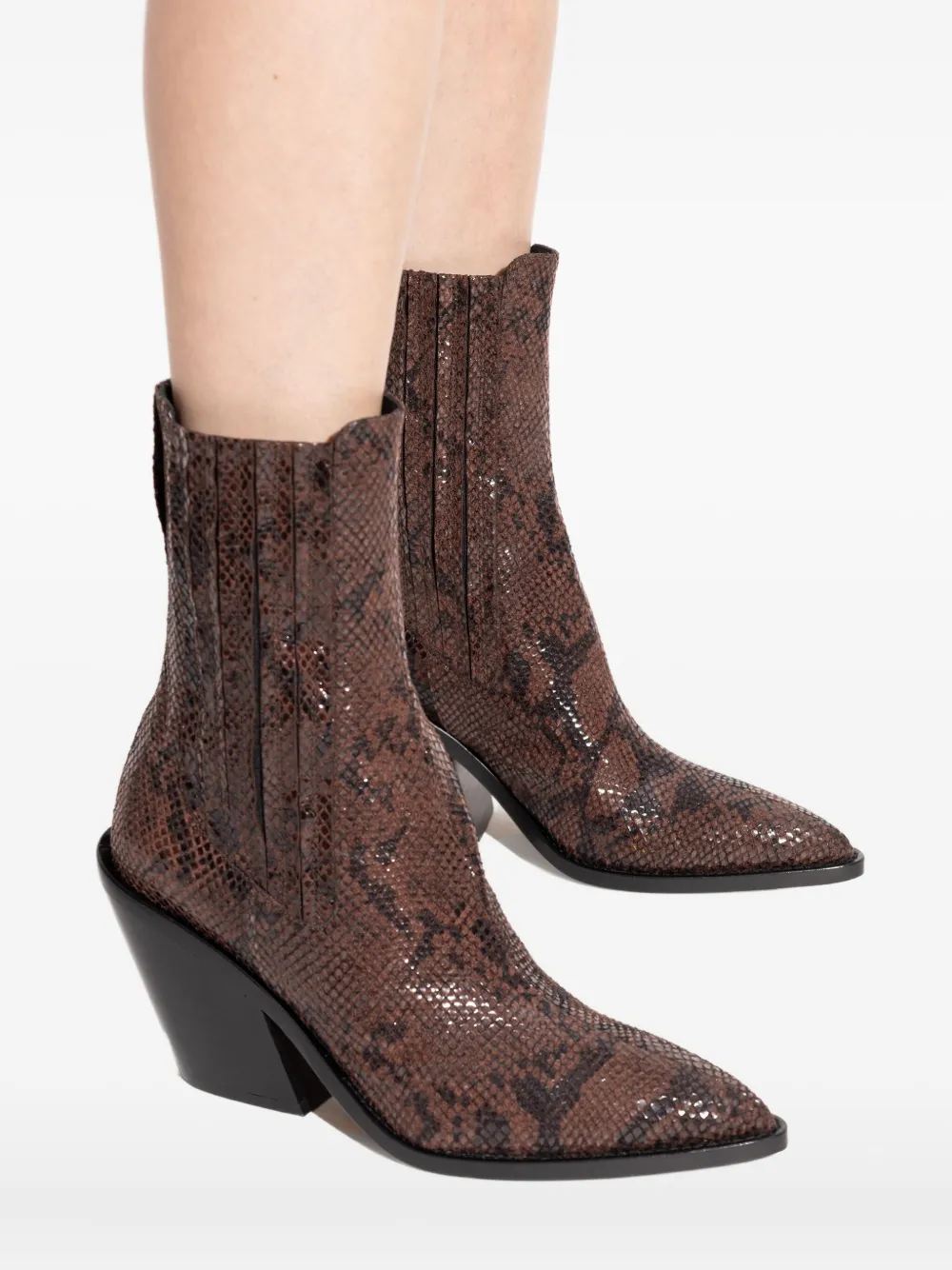 Коричневые туфли с эффектом змеиной кожи, острый носок, каблук 100 мм