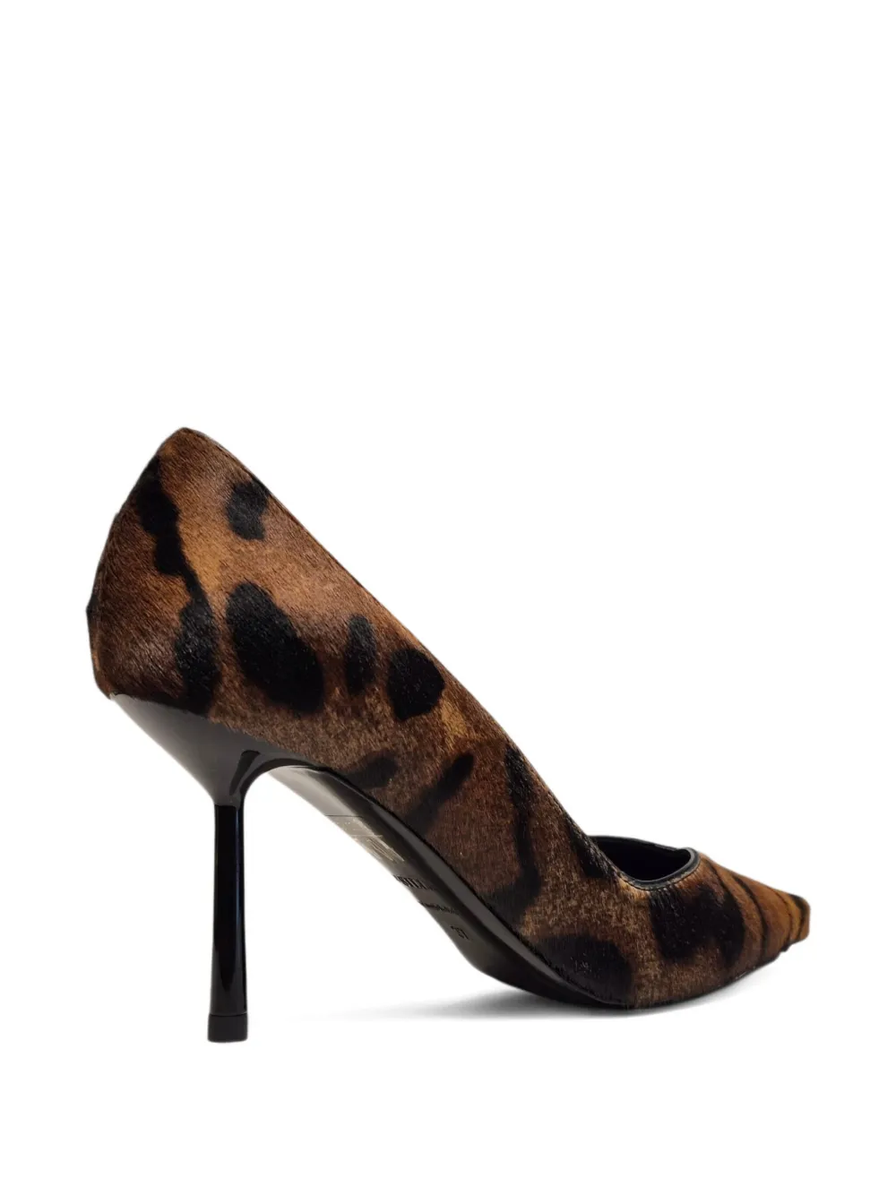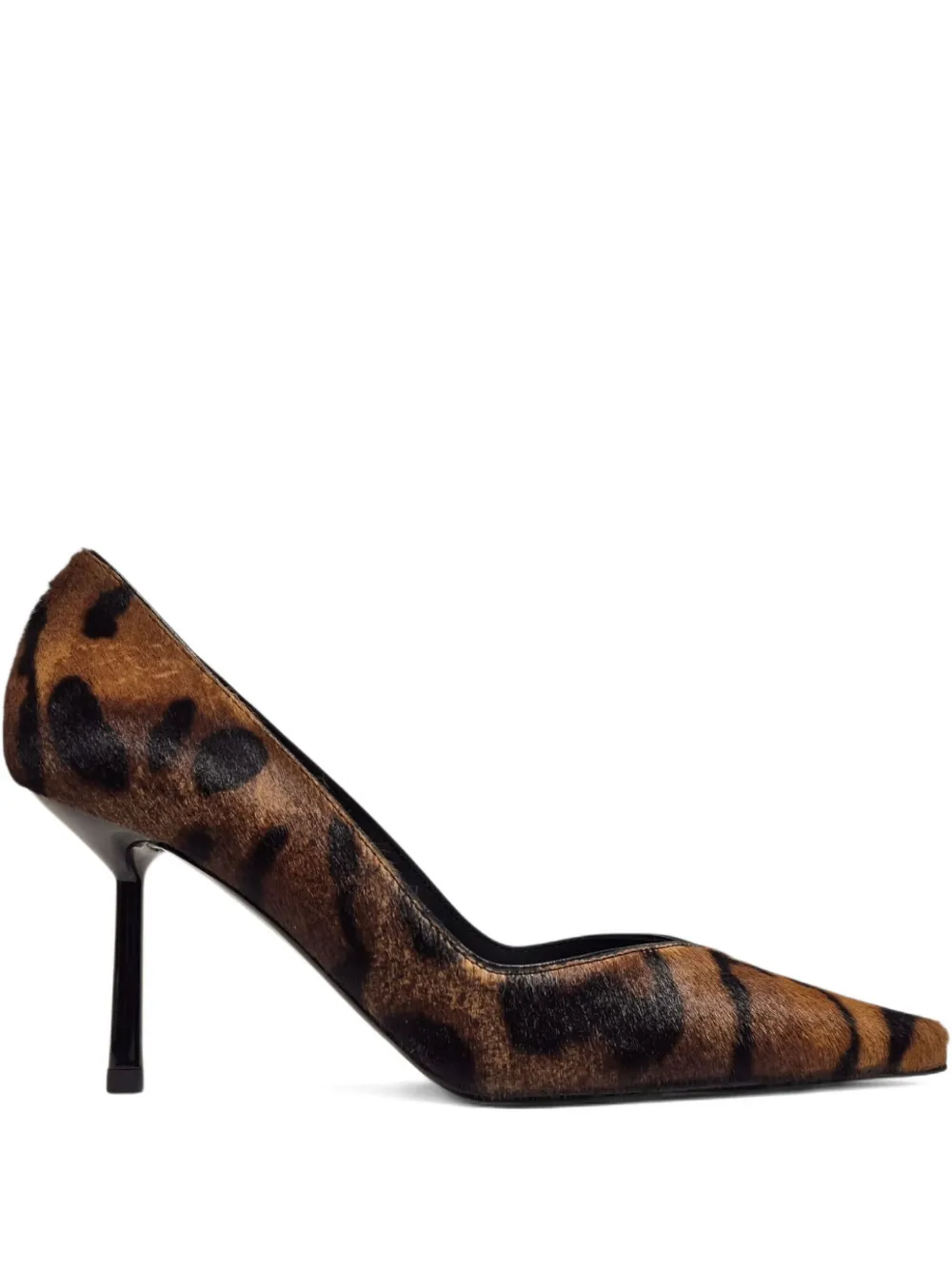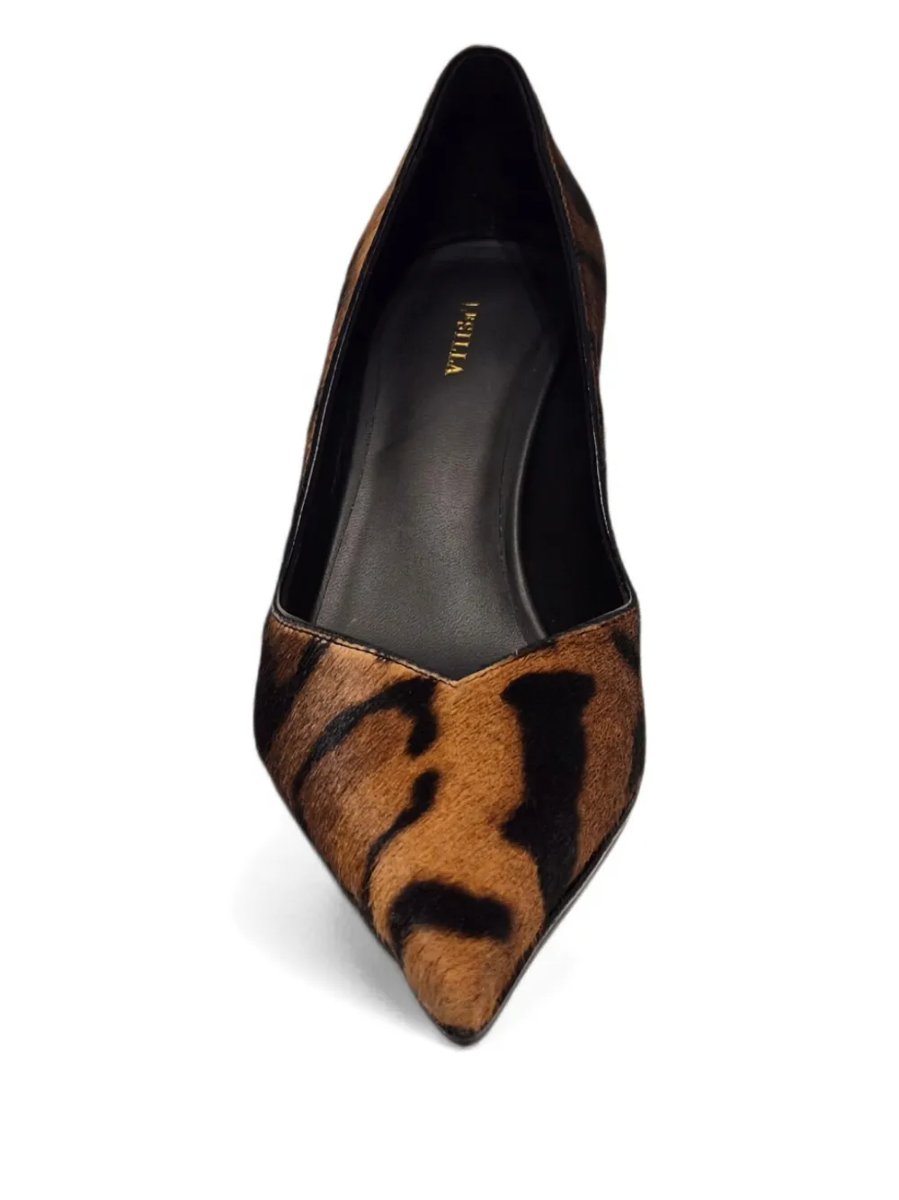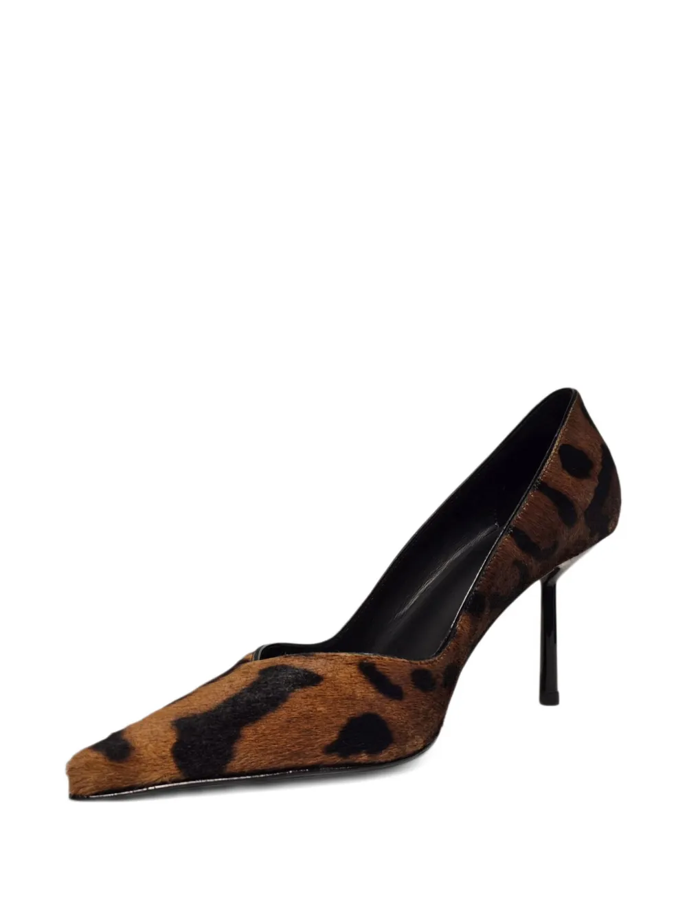 Туфли из коричневой телячьей шерсти с острым носком и V-образным вырезом на шпильке