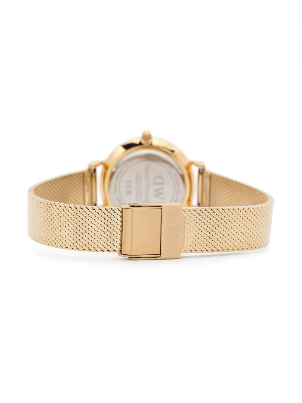 28 мм позолоченный японский кварцевый механизм из нержавеющей стали круглый циферблат стрелки в форме палочки надпись логотип завинчивающаяся заводная головка гравированная задняя крышка сетчатый браслет пряжка с гравировкой логотипа водонепроницаемость до 30 м/3 АТМ