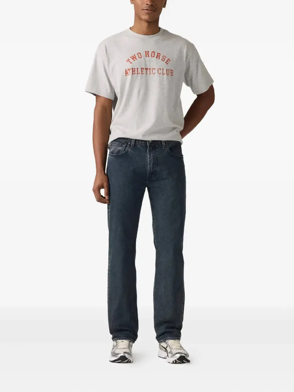 Синий прямой крой, пять карманов, застежка на пуговицы.