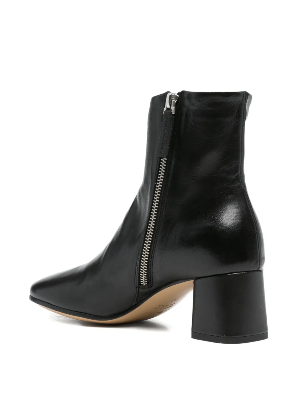 Верх из черной кожи, круглый носок, квадратный каблук, застежка-молния