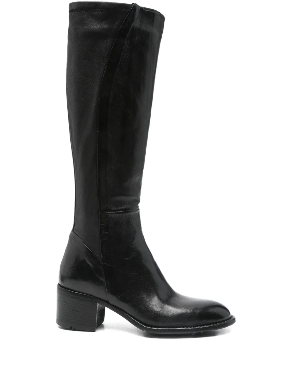 Туфли из черной телячьей кожи с застежкой-молнией сбоку, квадратным каблуком и миндалевидным носком.