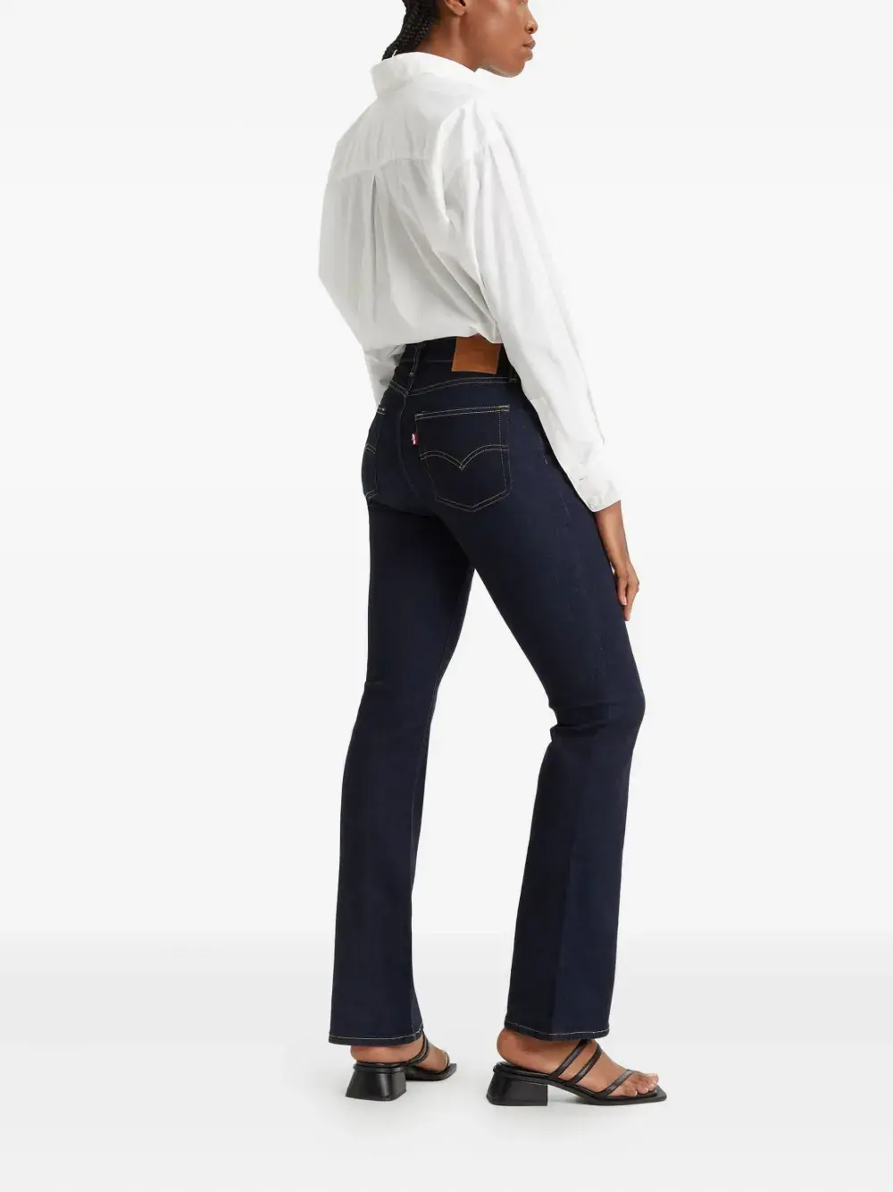 Темно-синий пятикарманный дизайн, застежка на пуговицы, шлевки для ремня, контрастная строчка, кожаная нашивка