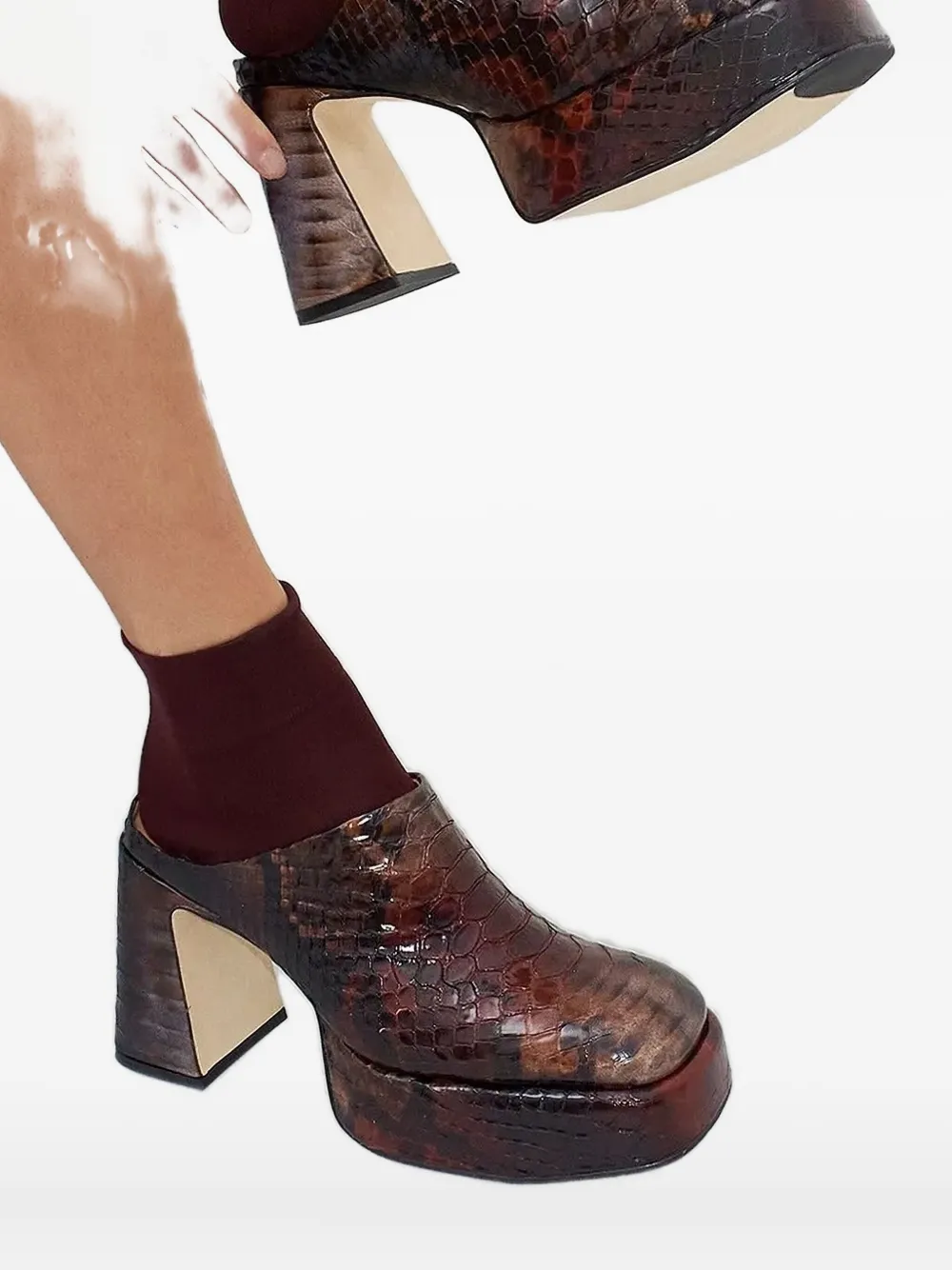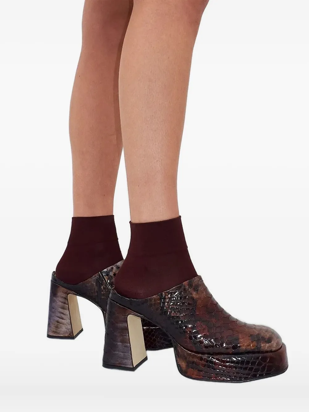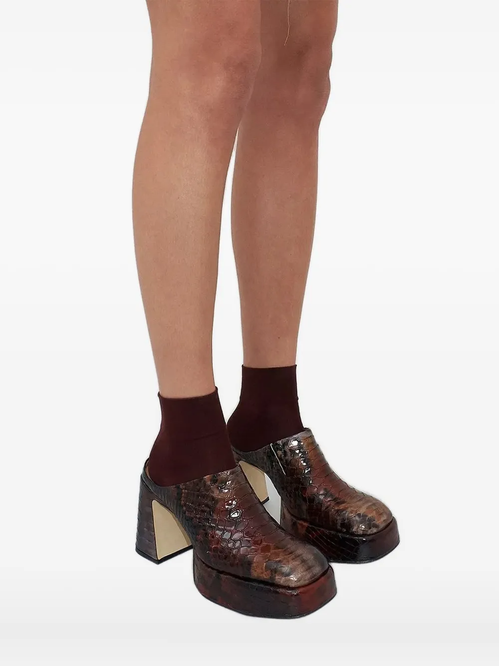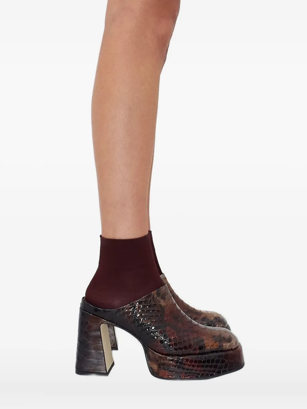 Коричневые туфли с рисунком змеиной кожи на платформе и квадратном каблуке