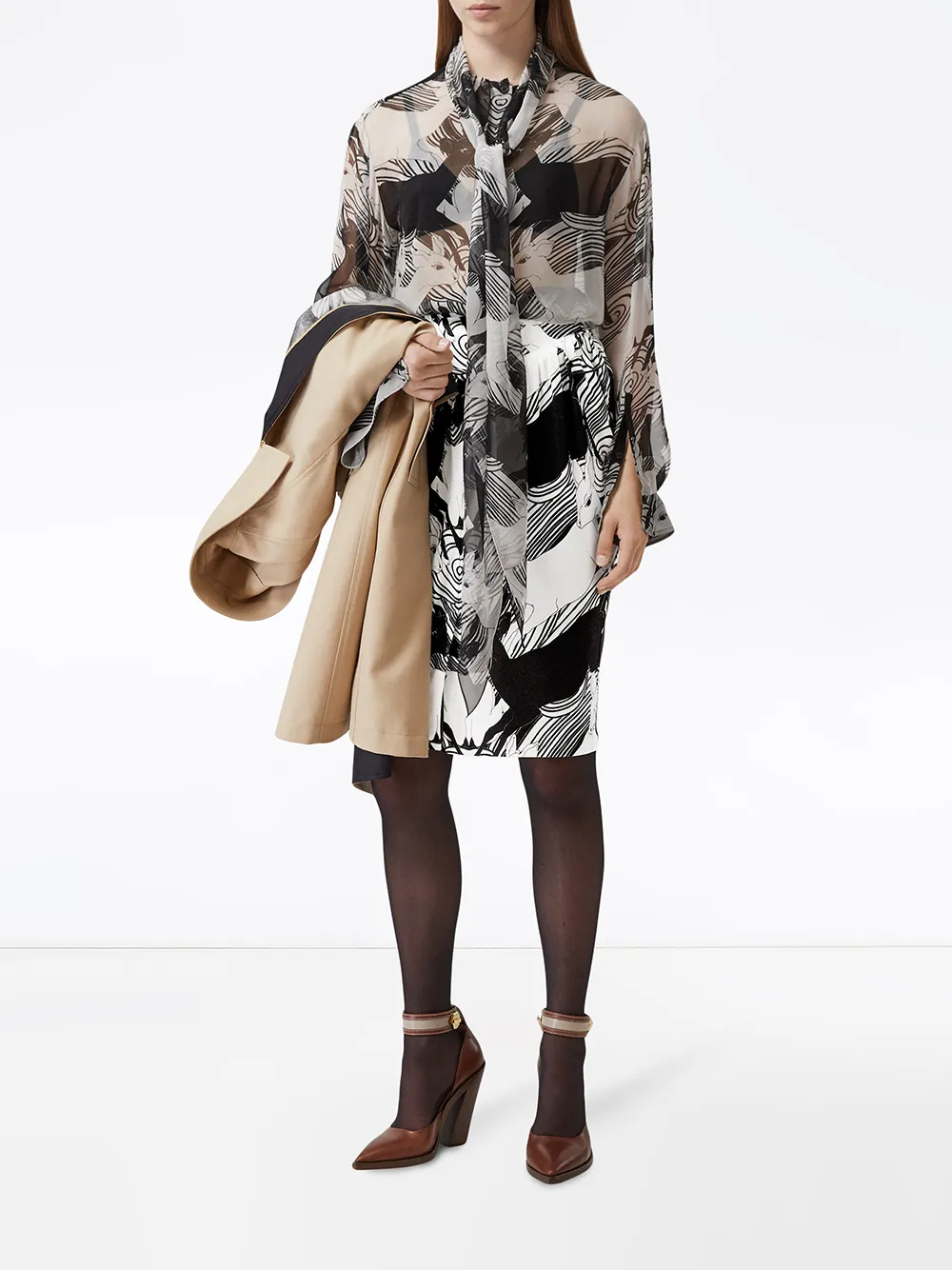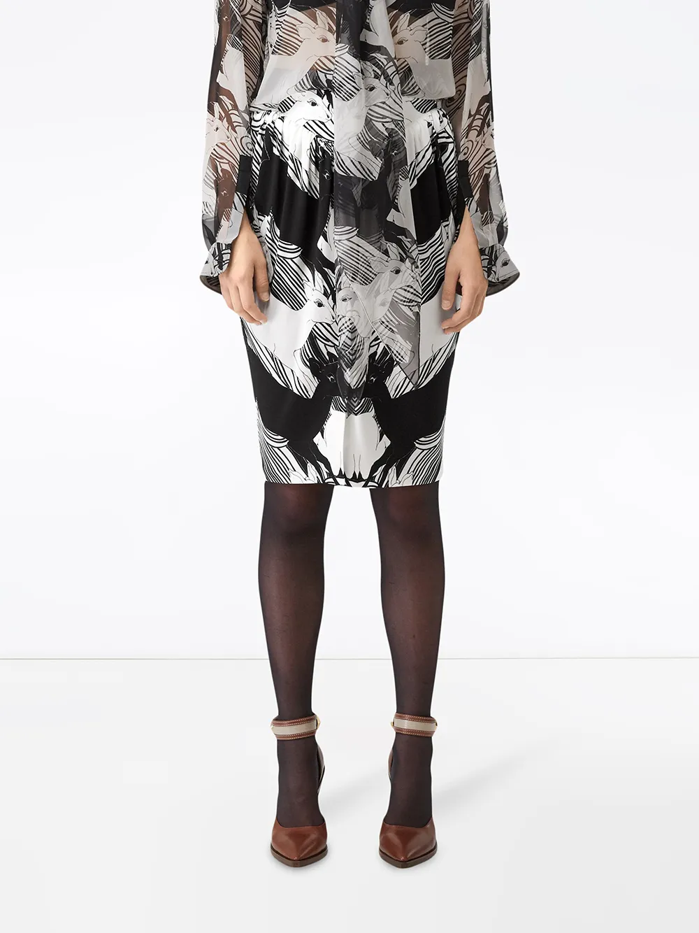 Абстрактный принт, юбка-карандаш и длина по колено.