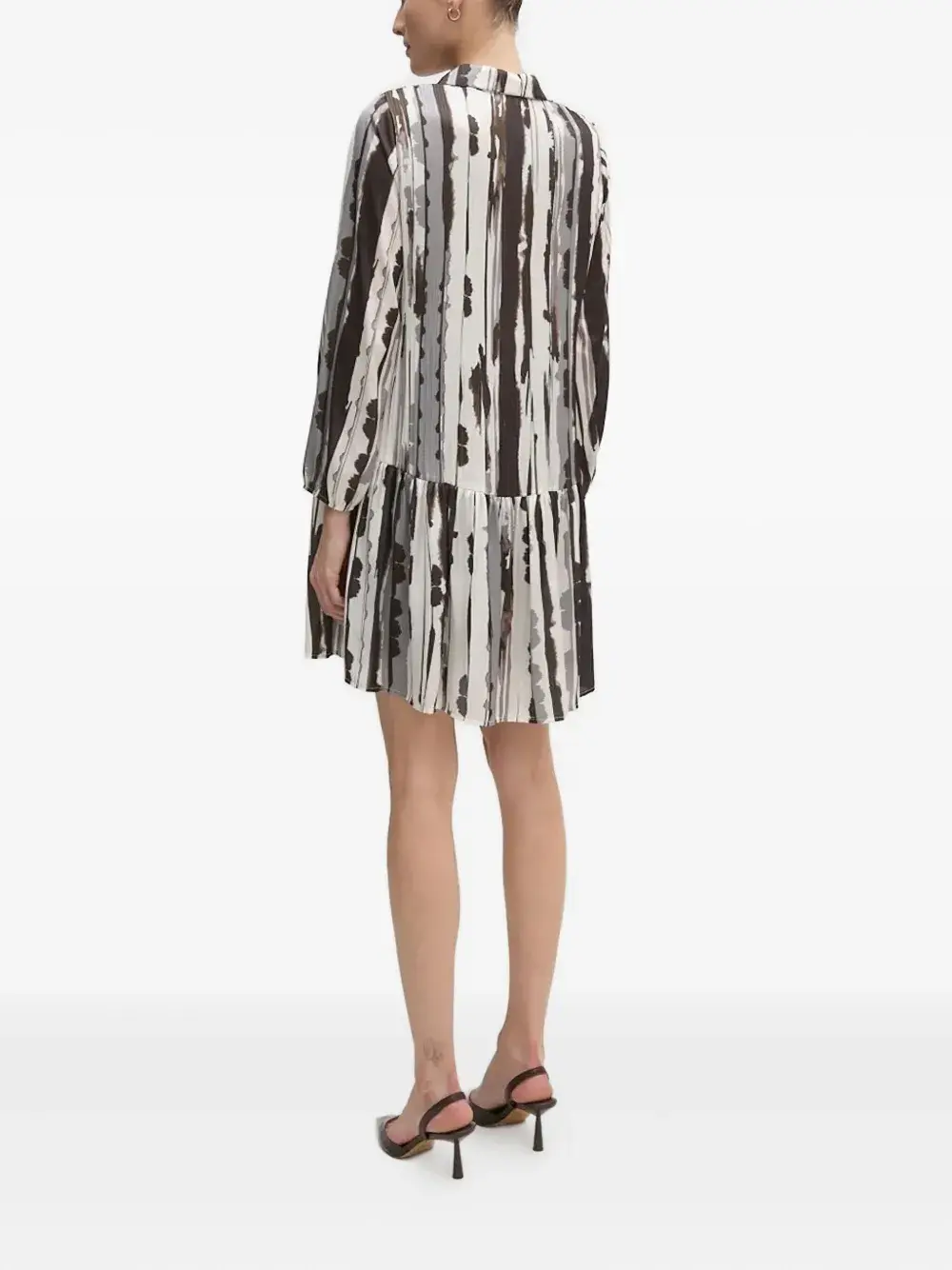 Белый абстрактный принт, воротник-стойка, длинные рукава, многоярусная юбка