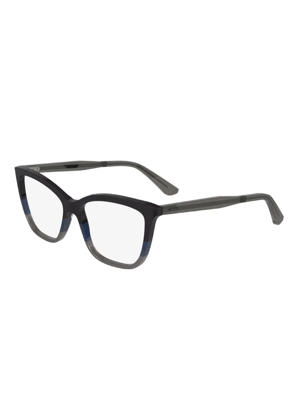 Оправа «кошачий глаз» из ацетата, чёрного, серого и синего цветов, градиентные линзы, прозрачные линзы, серые дужки. Очки поставляются с защитным футляром. Все очки FARFETCH продаются без диоптрий.